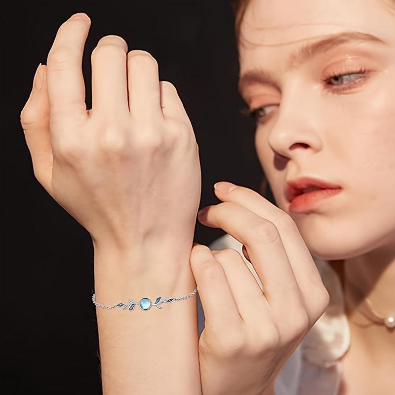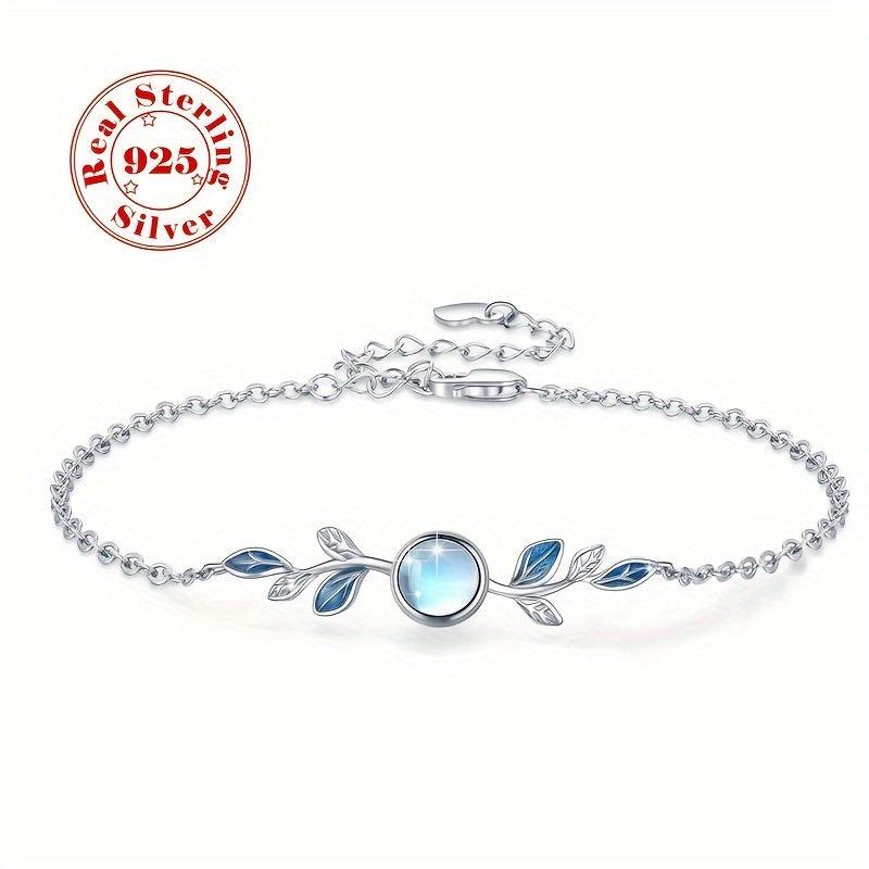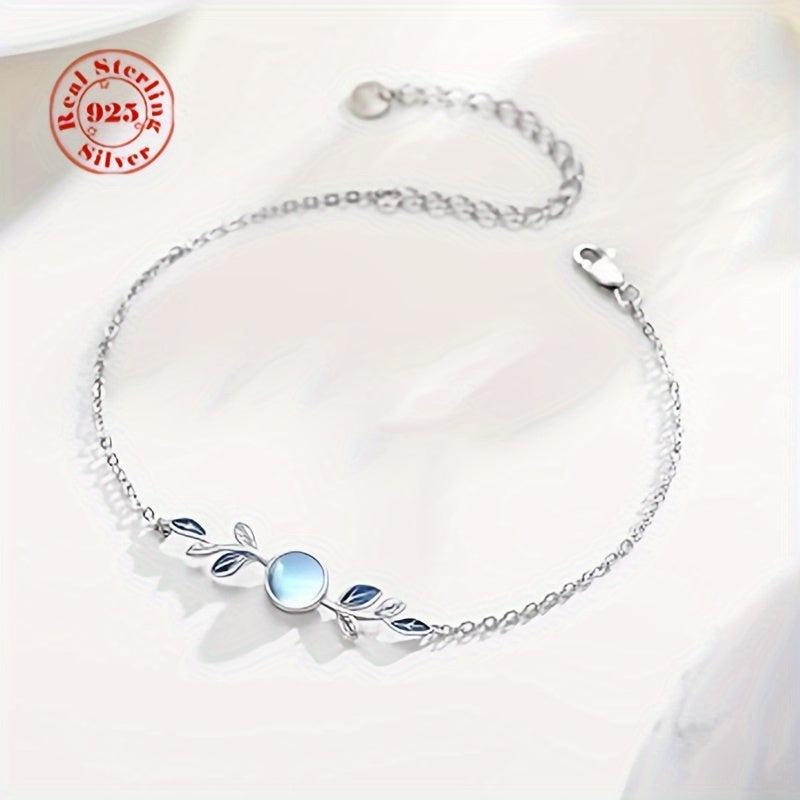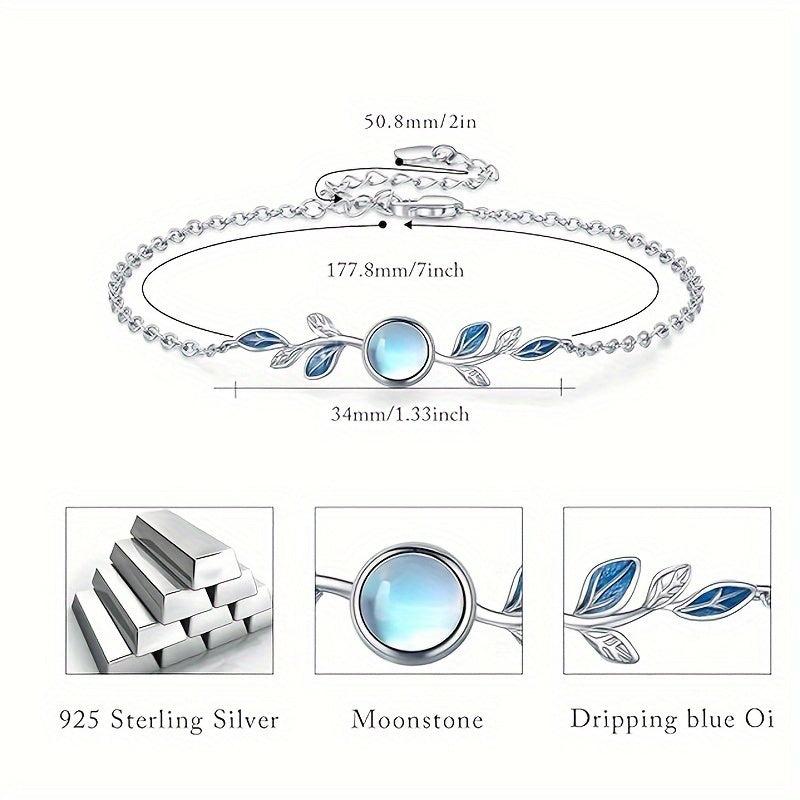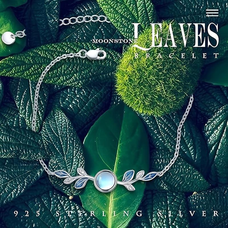 Elegant sterling silver leaf with moonstone link chain, perfect for daily wear and gifting. Hypoallergenic silver plated accessory for women.