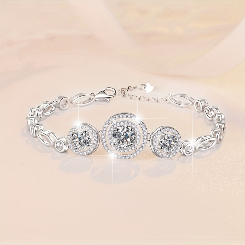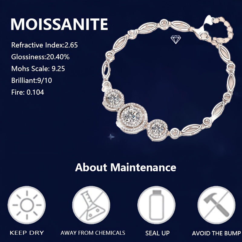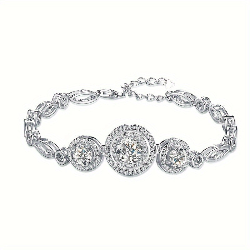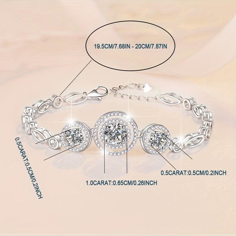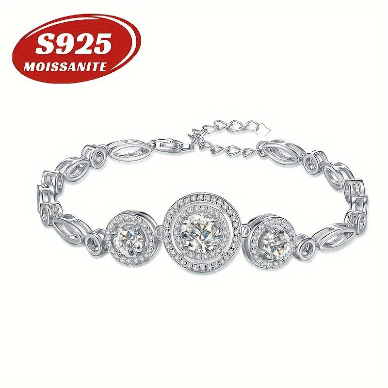 Elegant and versatile jewelry featuring a 2 carat round bag moissanite on a 925 silver bracelet. Perfect for any occasion.