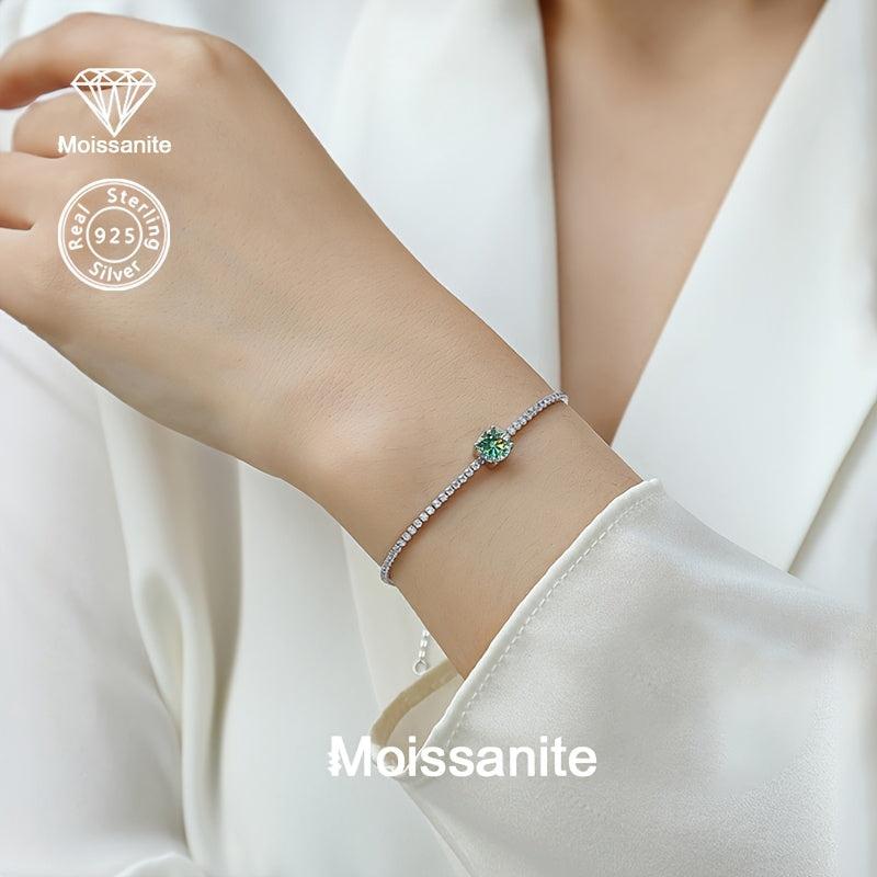 Add a touch of elegance with this stunning 925 silver bracelet featuring a sparkling green moissanite stone. Perfect for various occasions like Valentine's Day, Christmas, Halloween, birthdays, New Year's parties, and weddings.