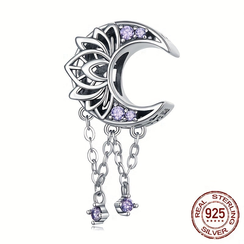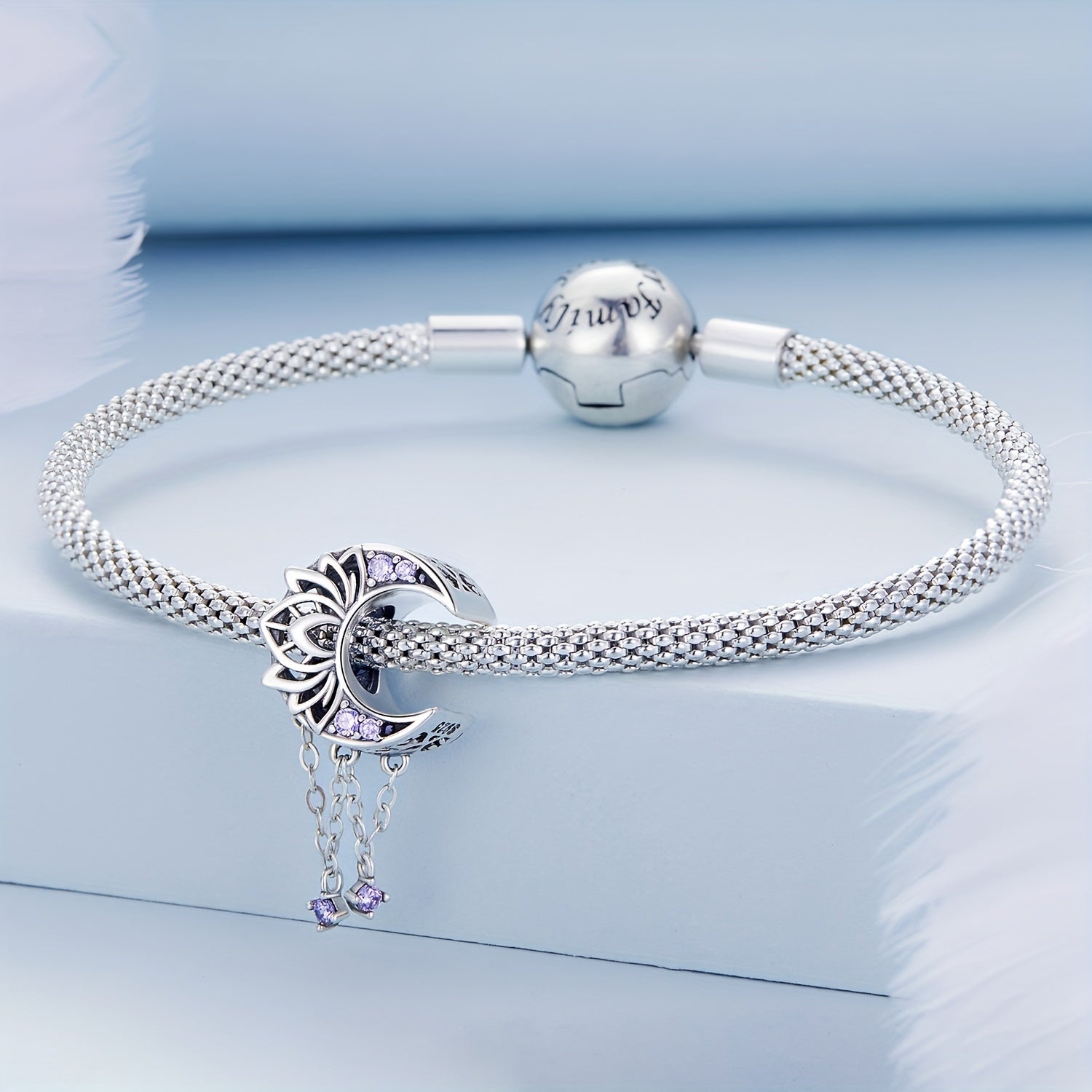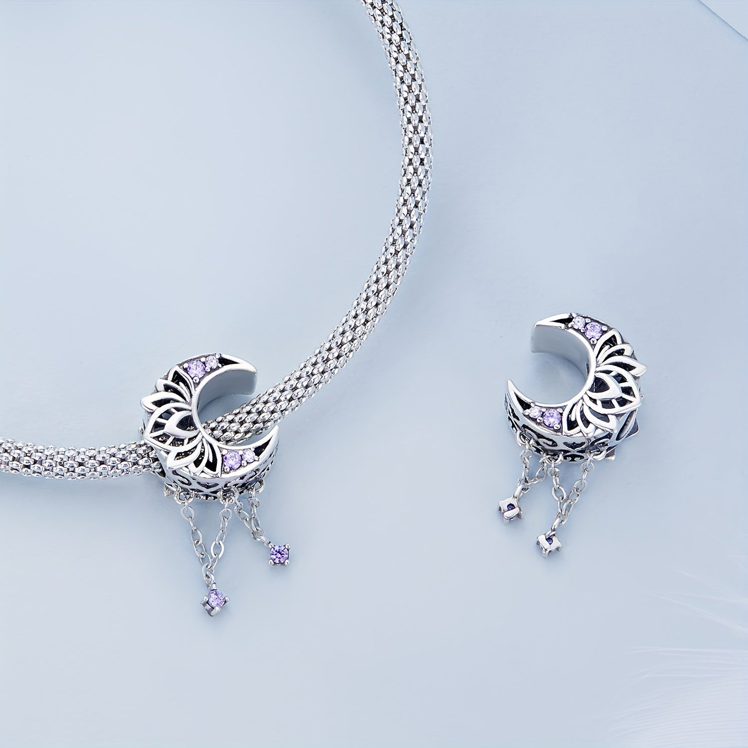 Add a touch of celestial charm to your DIY bracelet with this 925 sterling silver moon tassel bracelet featuring a purple zircon crescent moon bead.