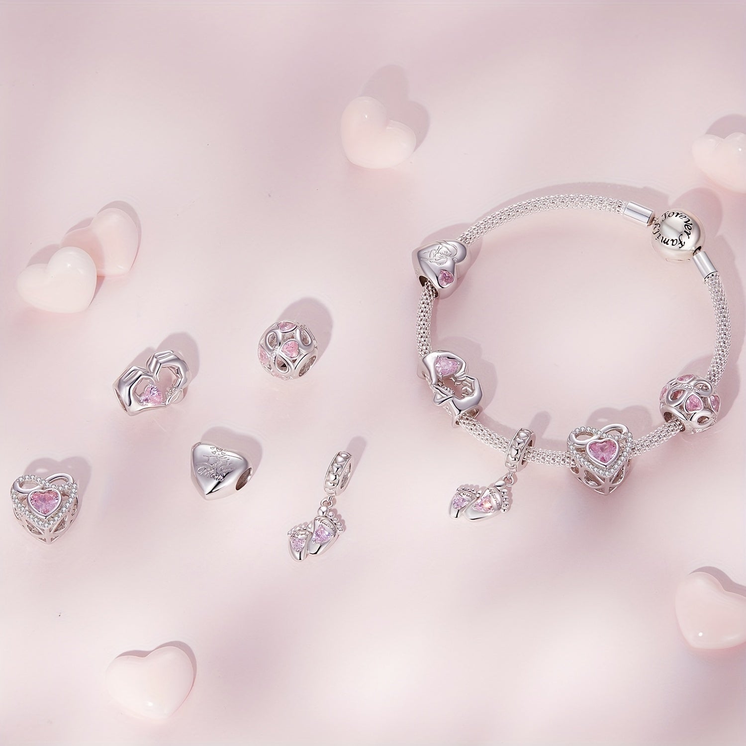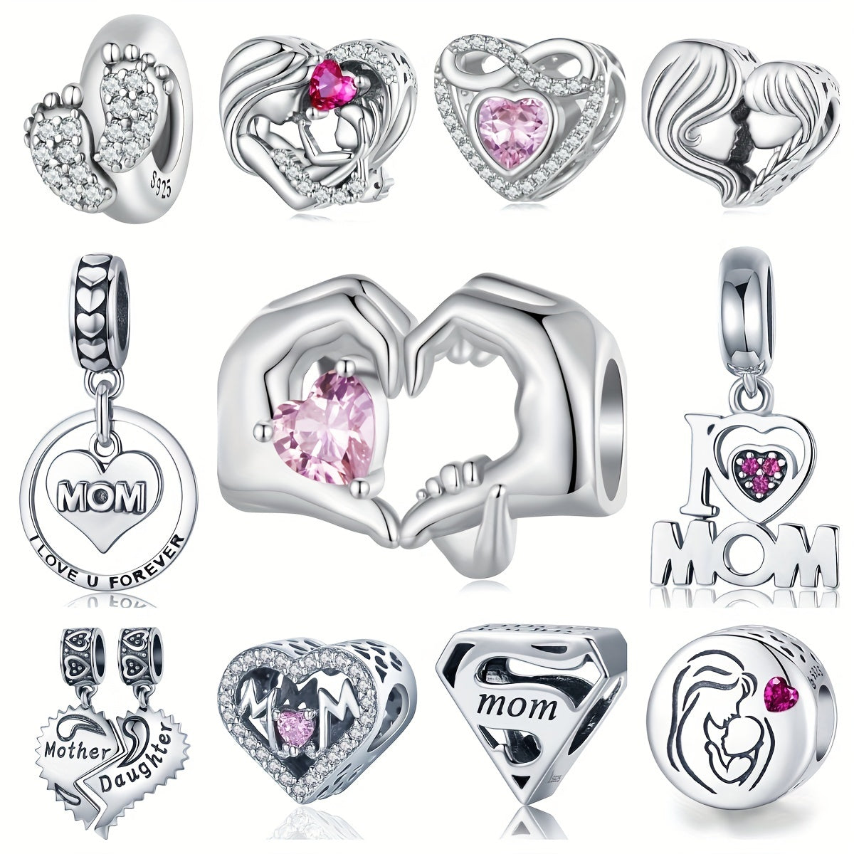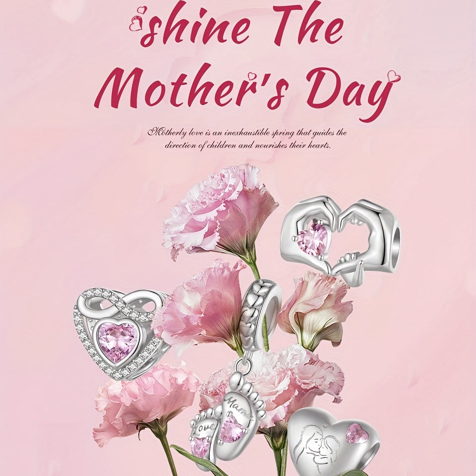 Express your love with this 925 sterling silver Mother & Daughter bead heart charm, perfect for women's bracelets. Ideal gift for Mother's Day or any special occasion.