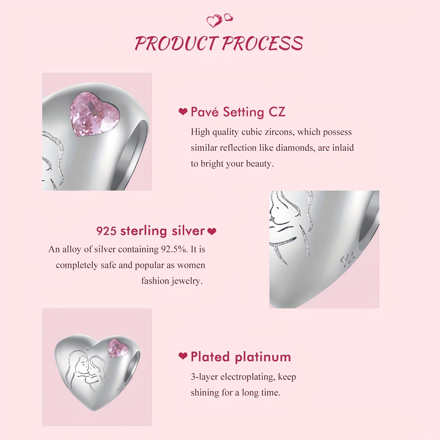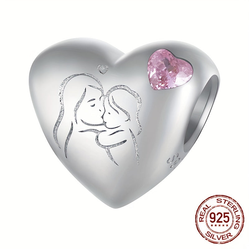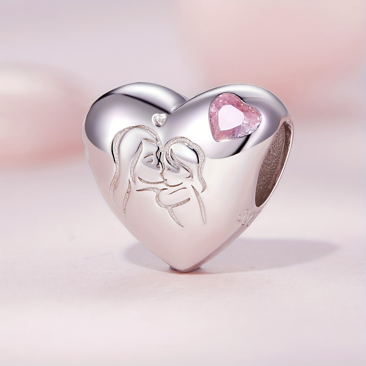 Adorn your bracelet with this charming 925 sterling silver bead featuring a mother and daughter kissing pattern with pink heart rhinestones. Perfect for DIY jewelry gifts.