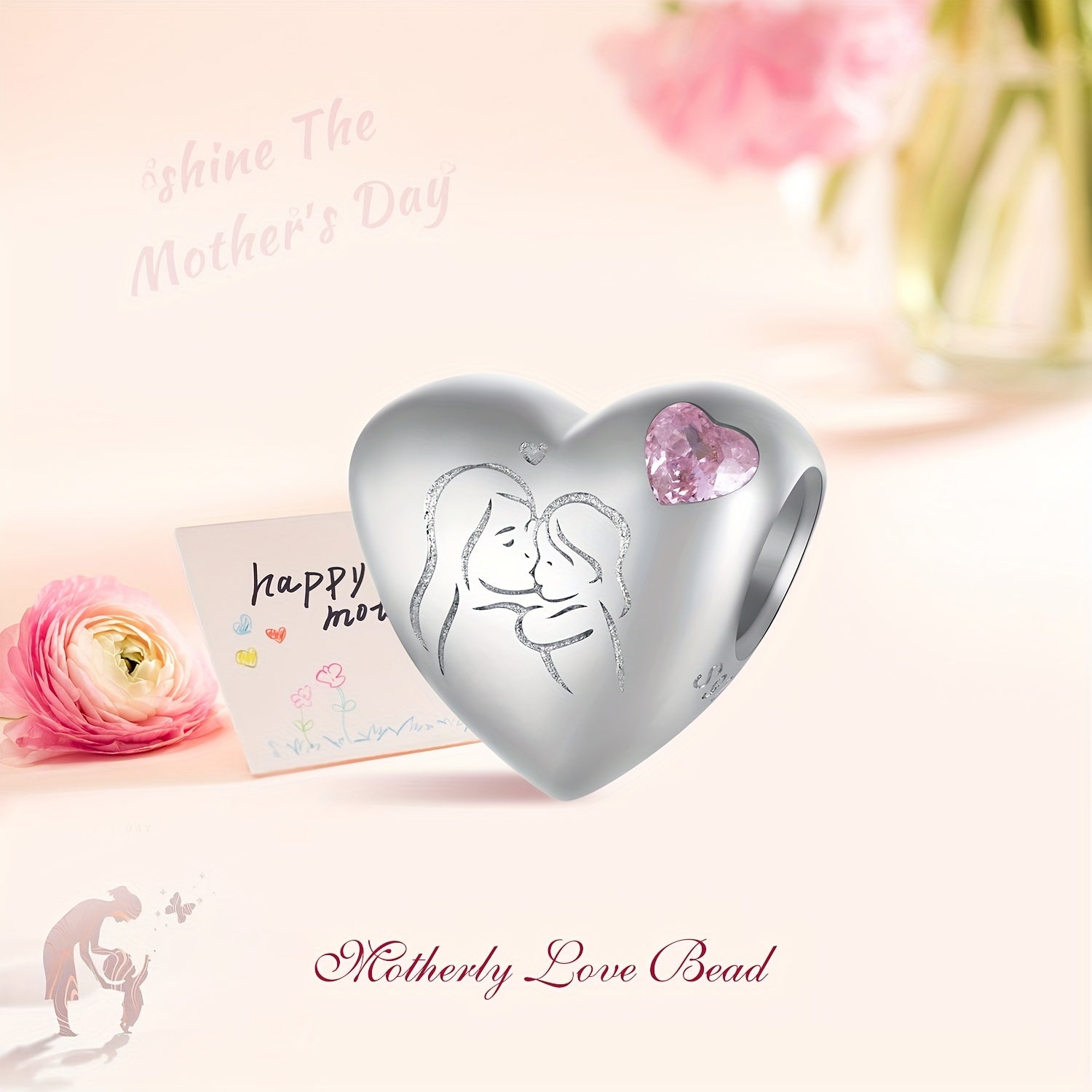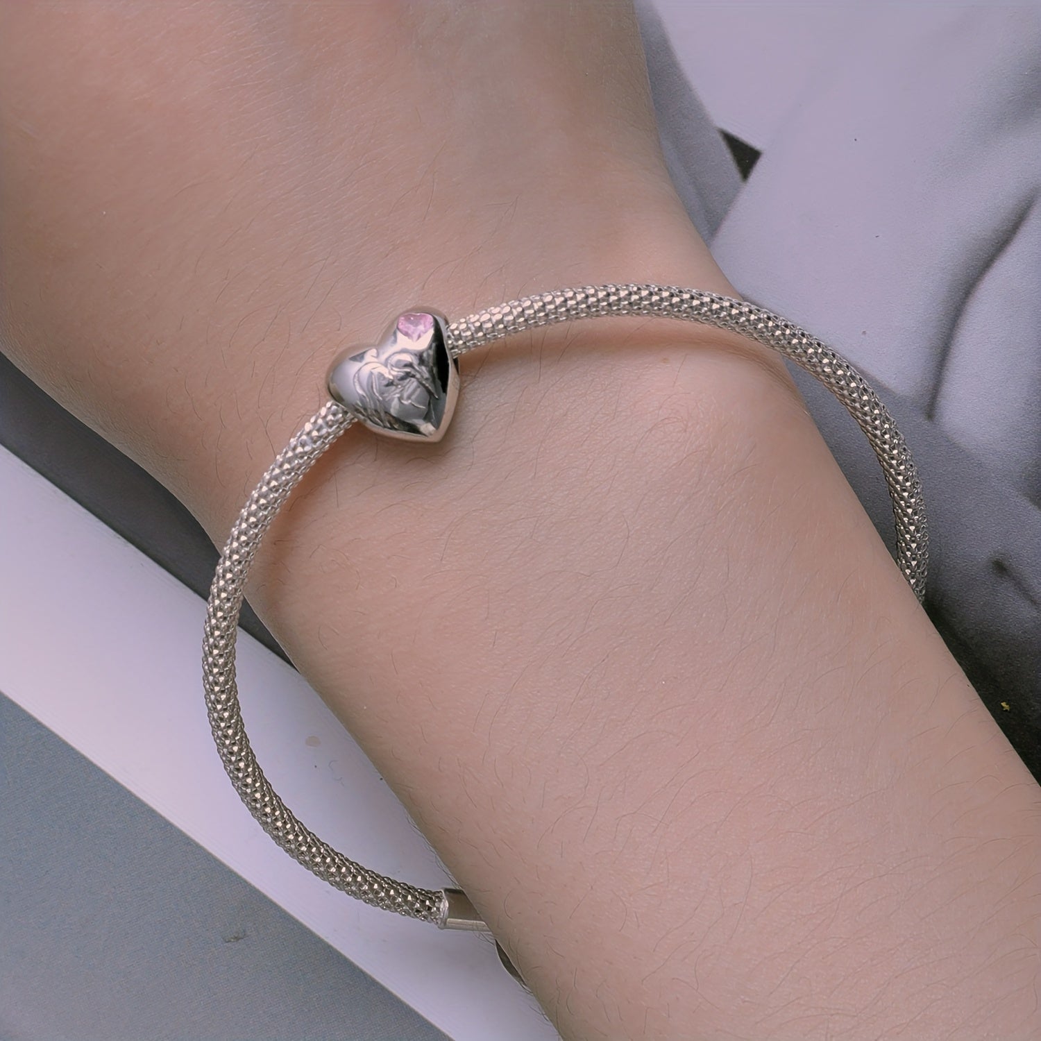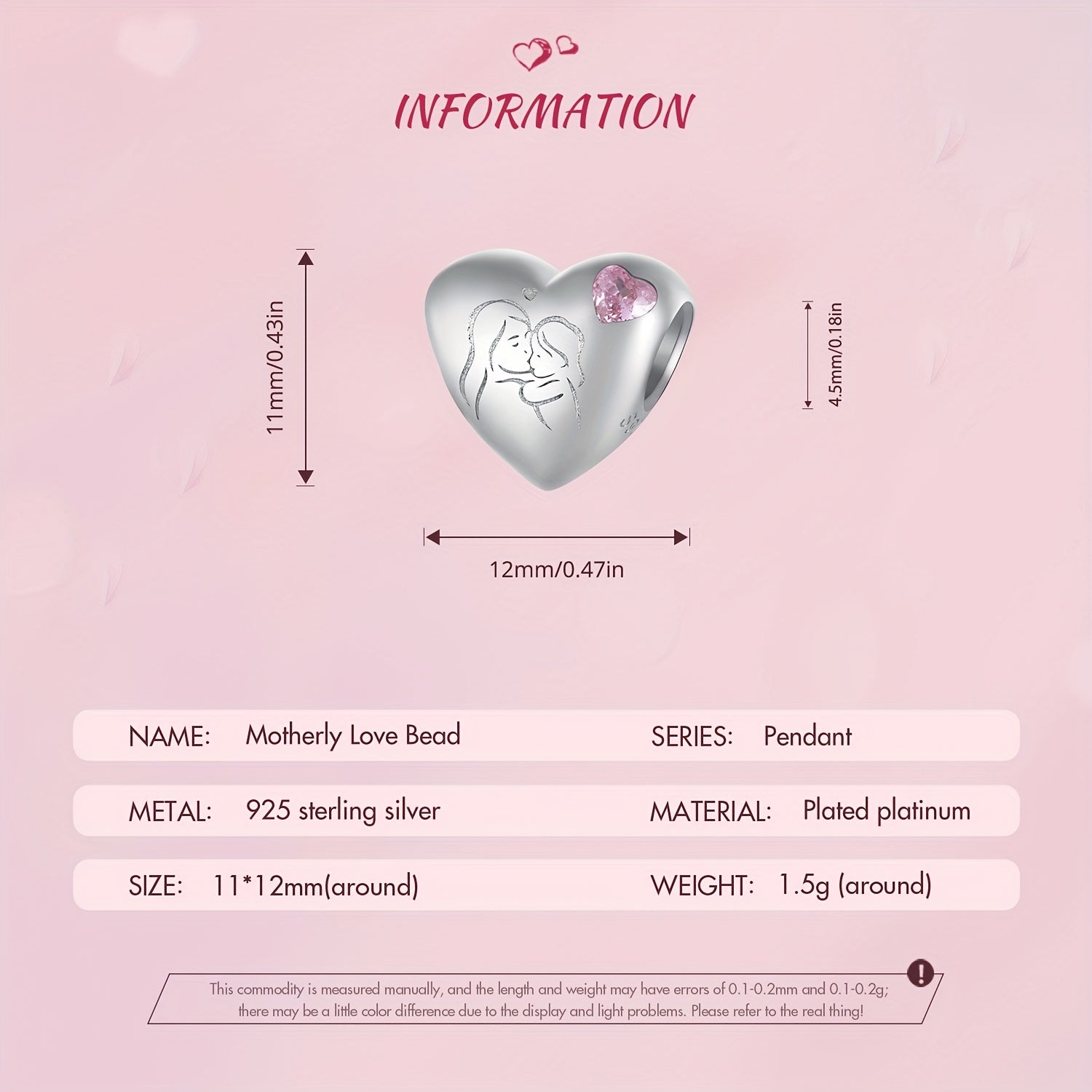 Adorn your bracelet with this charming 925 sterling silver bead featuring a mother and daughter kissing pattern with pink heart rhinestones. Perfect for DIY jewelry gifts.