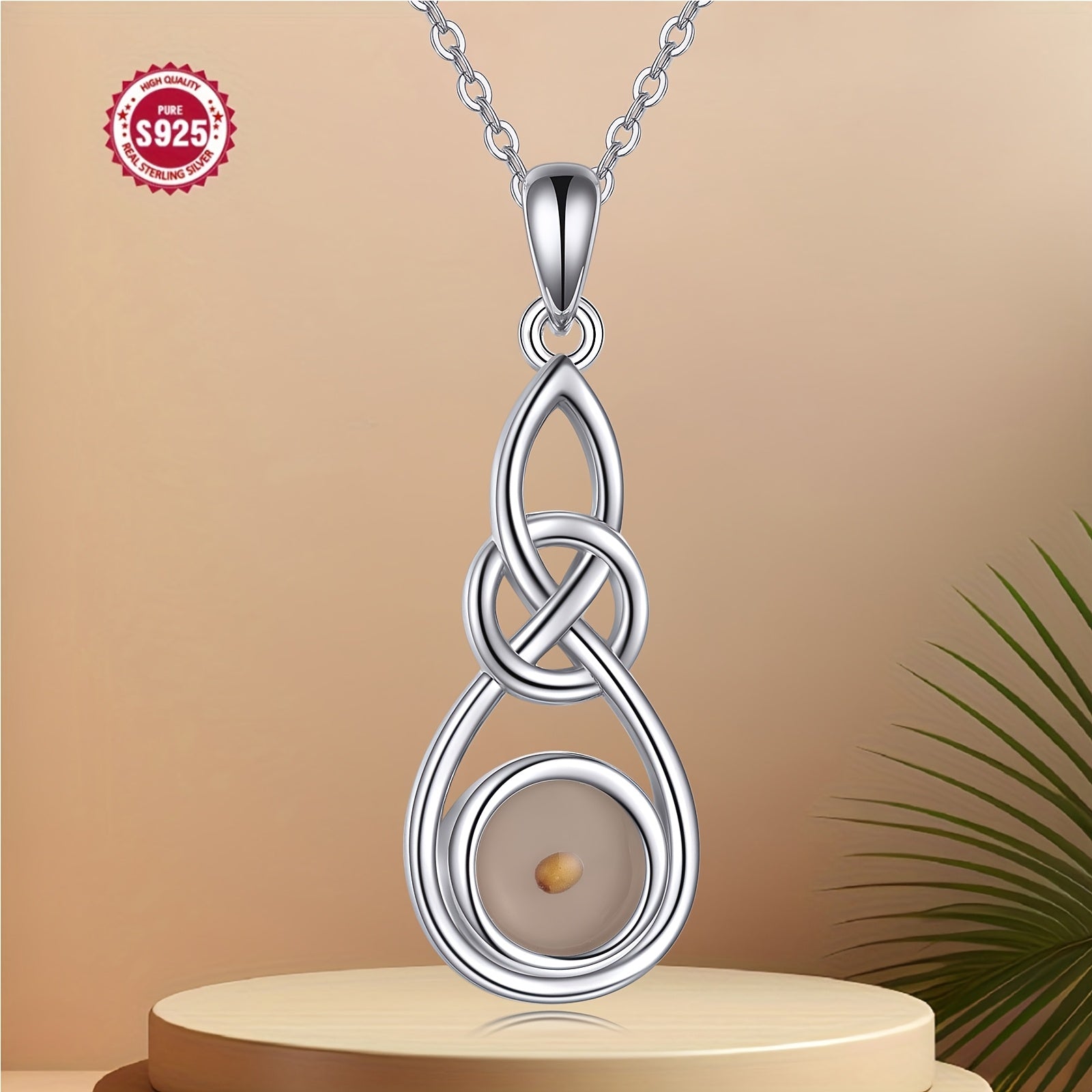 Add a touch of elegance with this 925 sterling silver necklace featuring a Celtic knot mustard seed pendant.