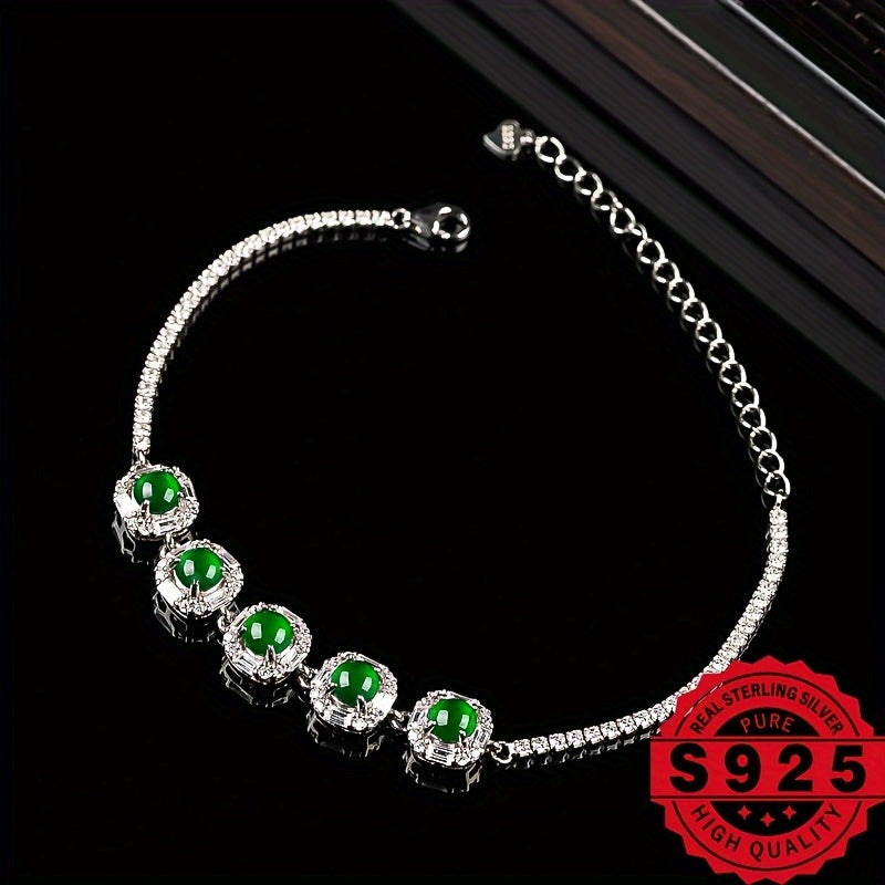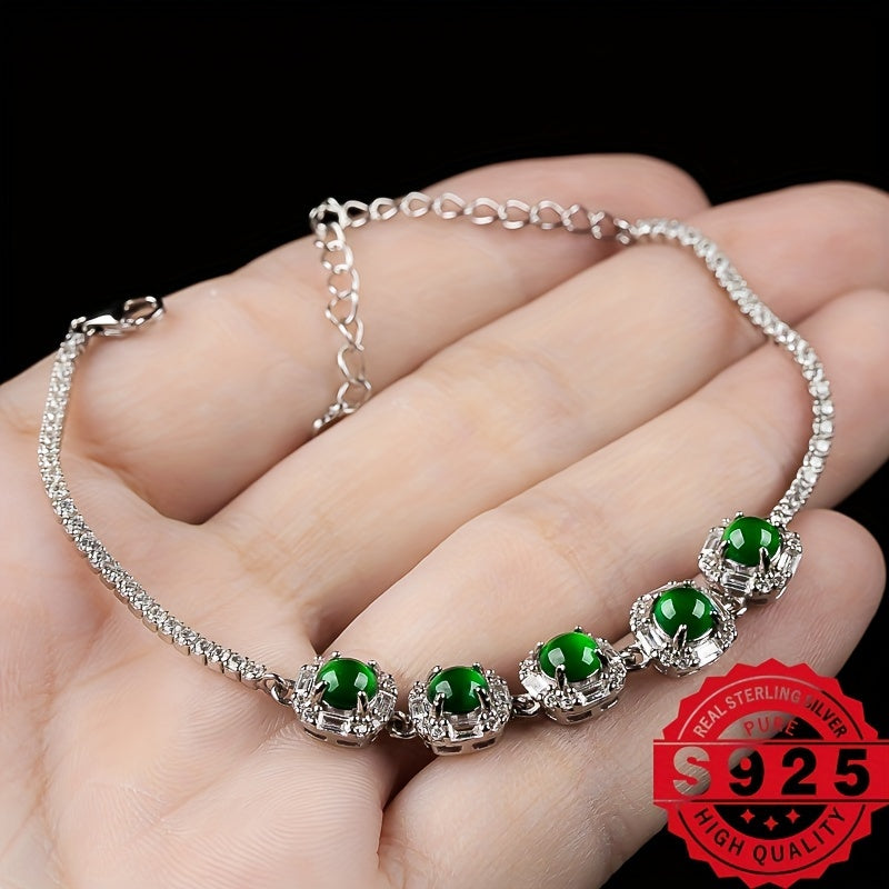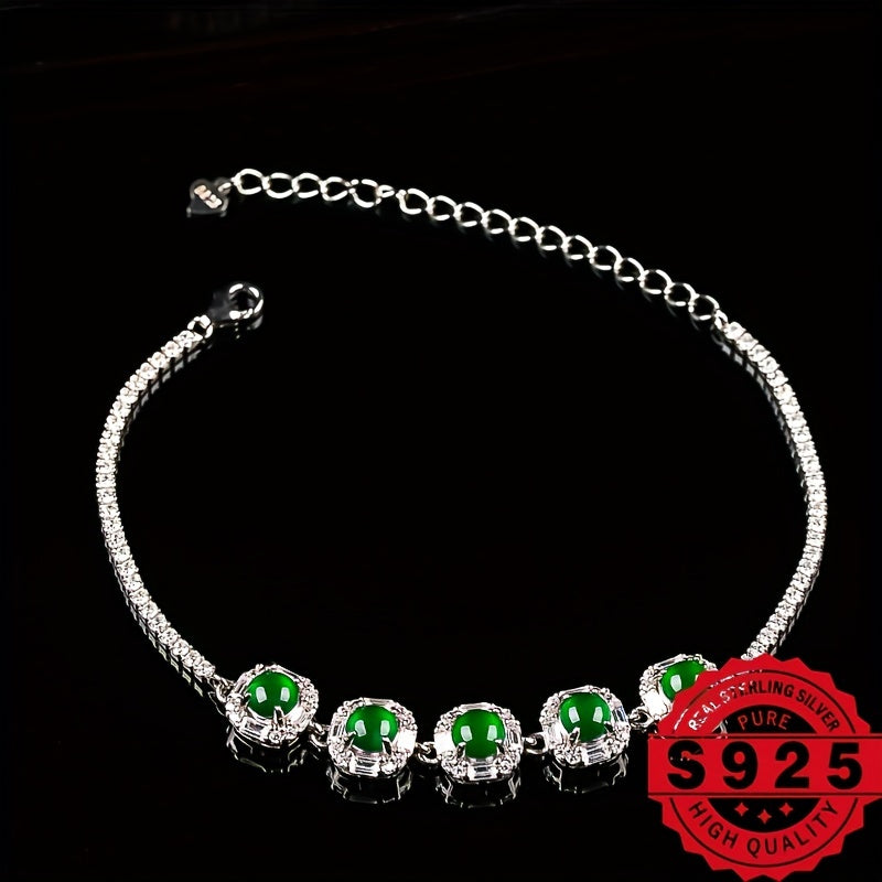This 925 silver bracelet is beautifully inlaid with natural stones. It comes in a gift box, making it perfect for gifting or personal use. The size can be freely adjusted for a comfortable fit.