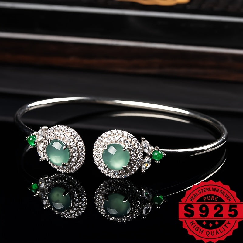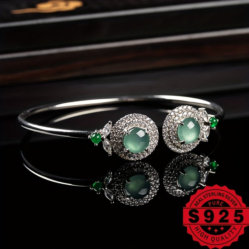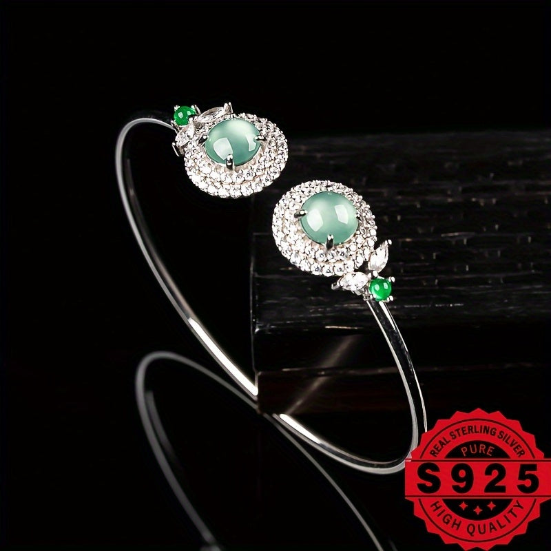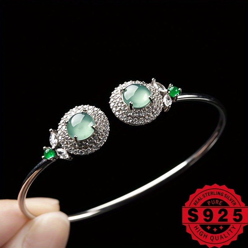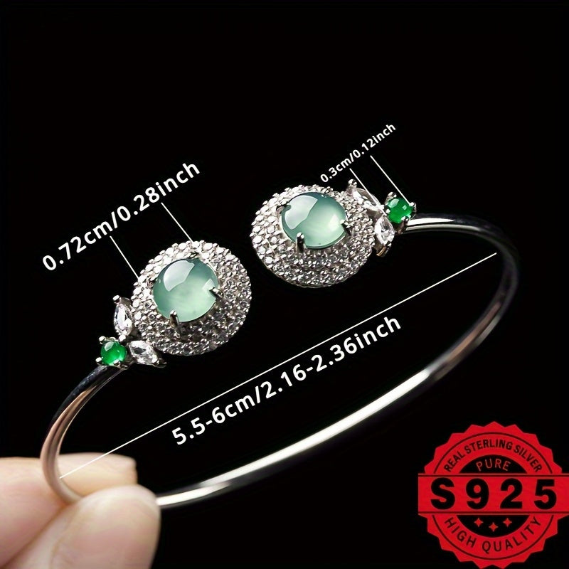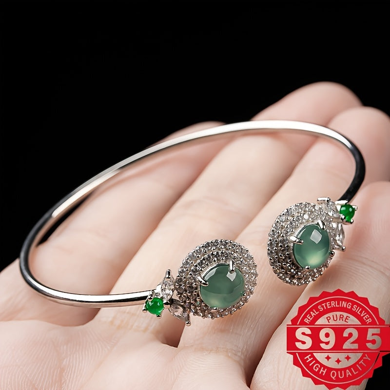 This elegant bracelet features 925 silver with natural stone inlay, perfect for DIY customization. A great gift for ladies who appreciate unique jewelry.