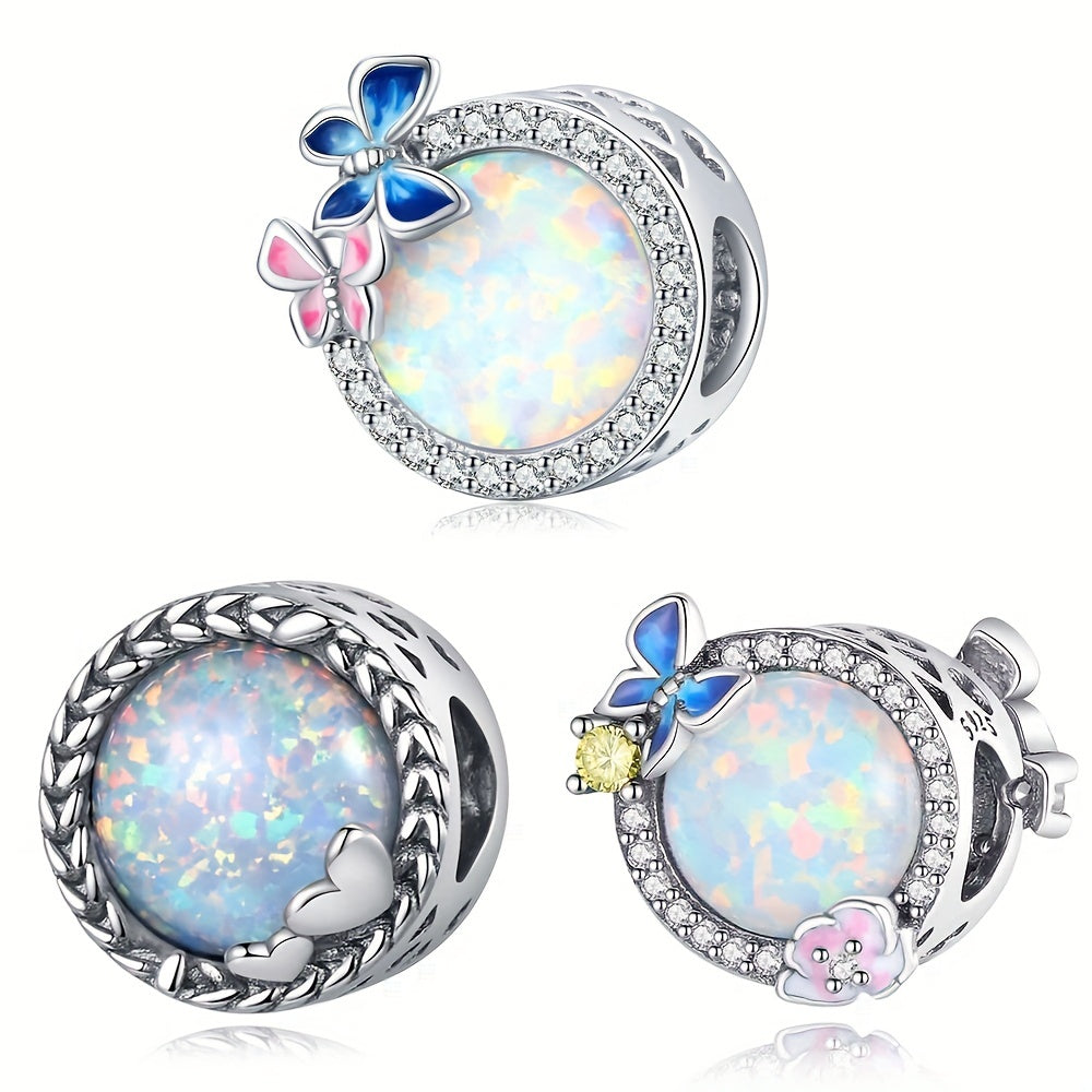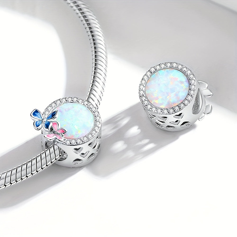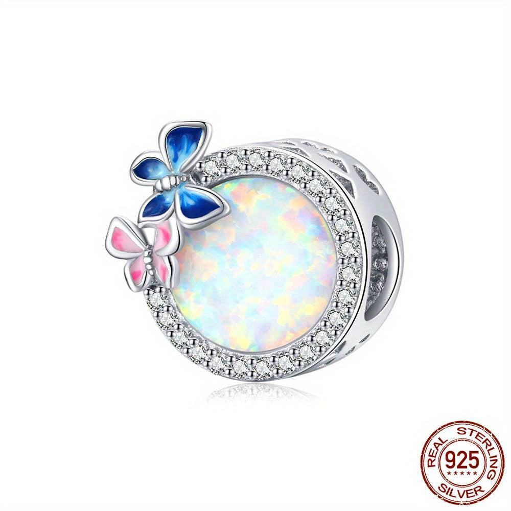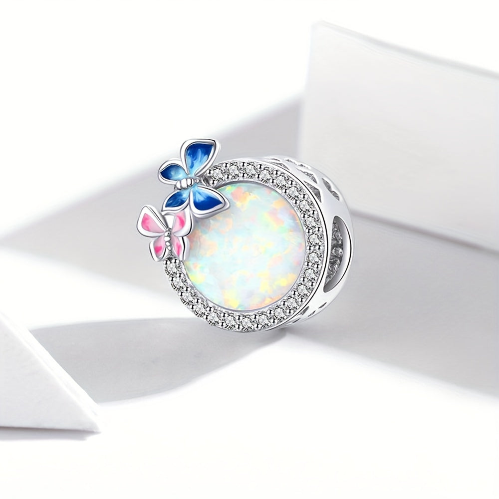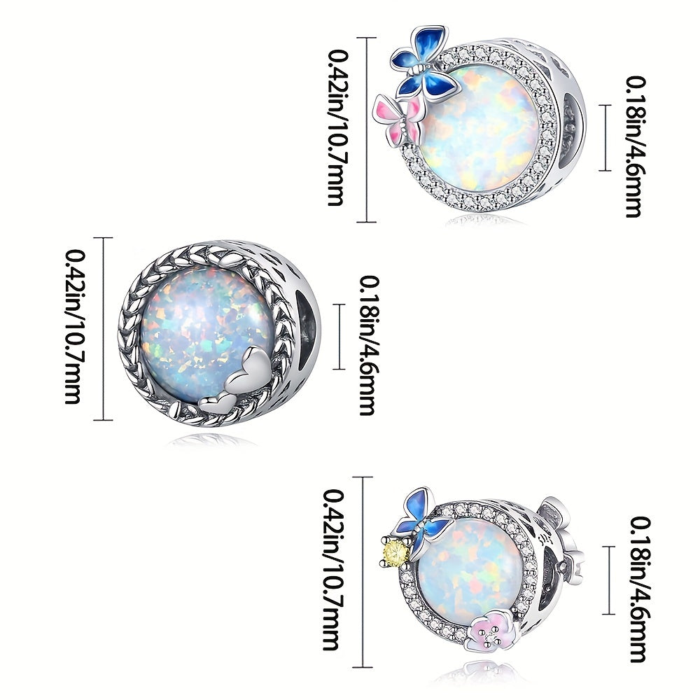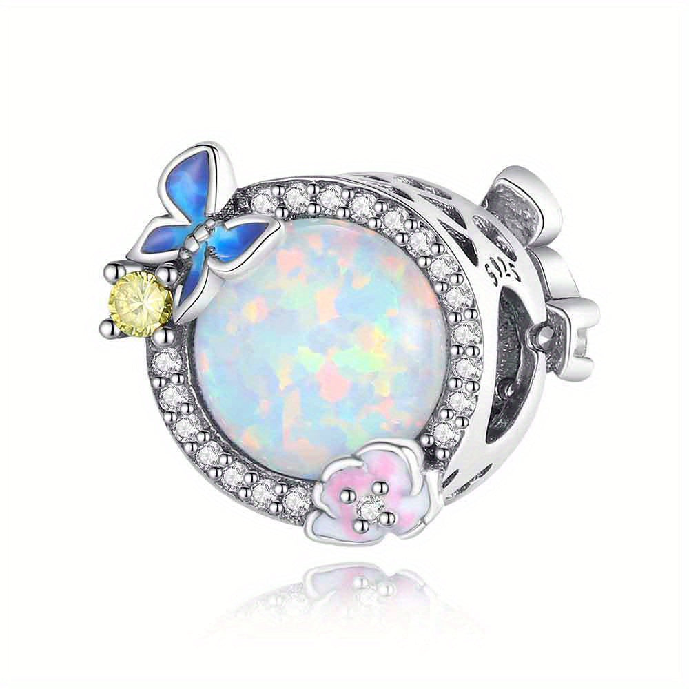 Add a touch of elegance to your bracelet with this beautiful round opal butterfly pendant. Made of 925 silver, this pendant features intricate flower string beading.