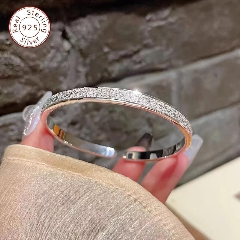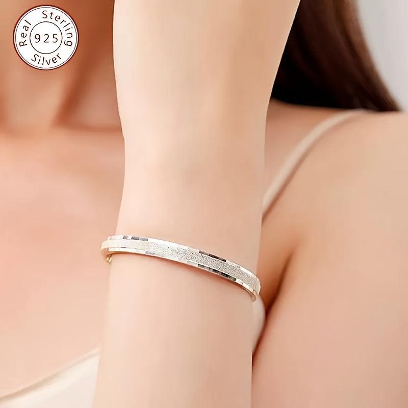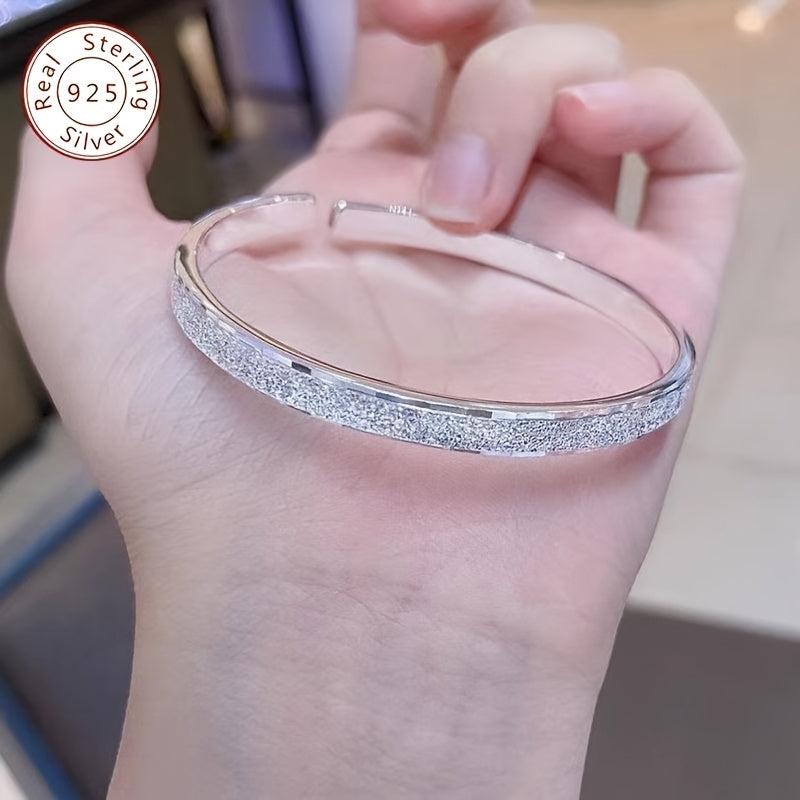 This stunning 925 silver open bangle bracelet is the perfect gift for your girlfriend's birthday or any special occasion. The adjustable design ensures a comfortable fit on any wrist size.