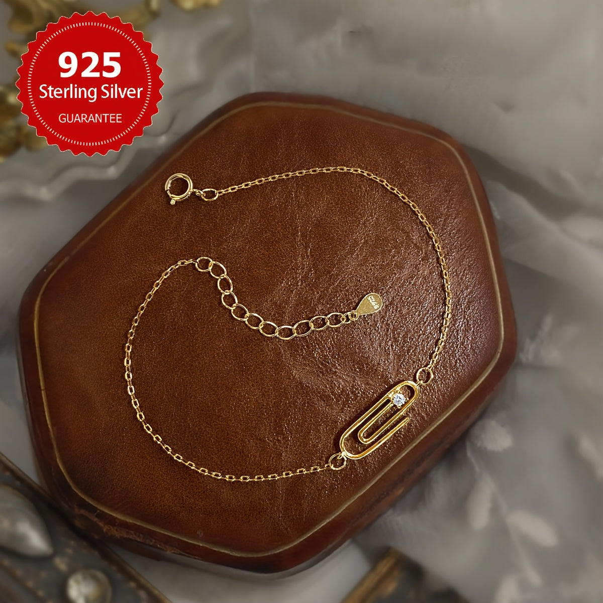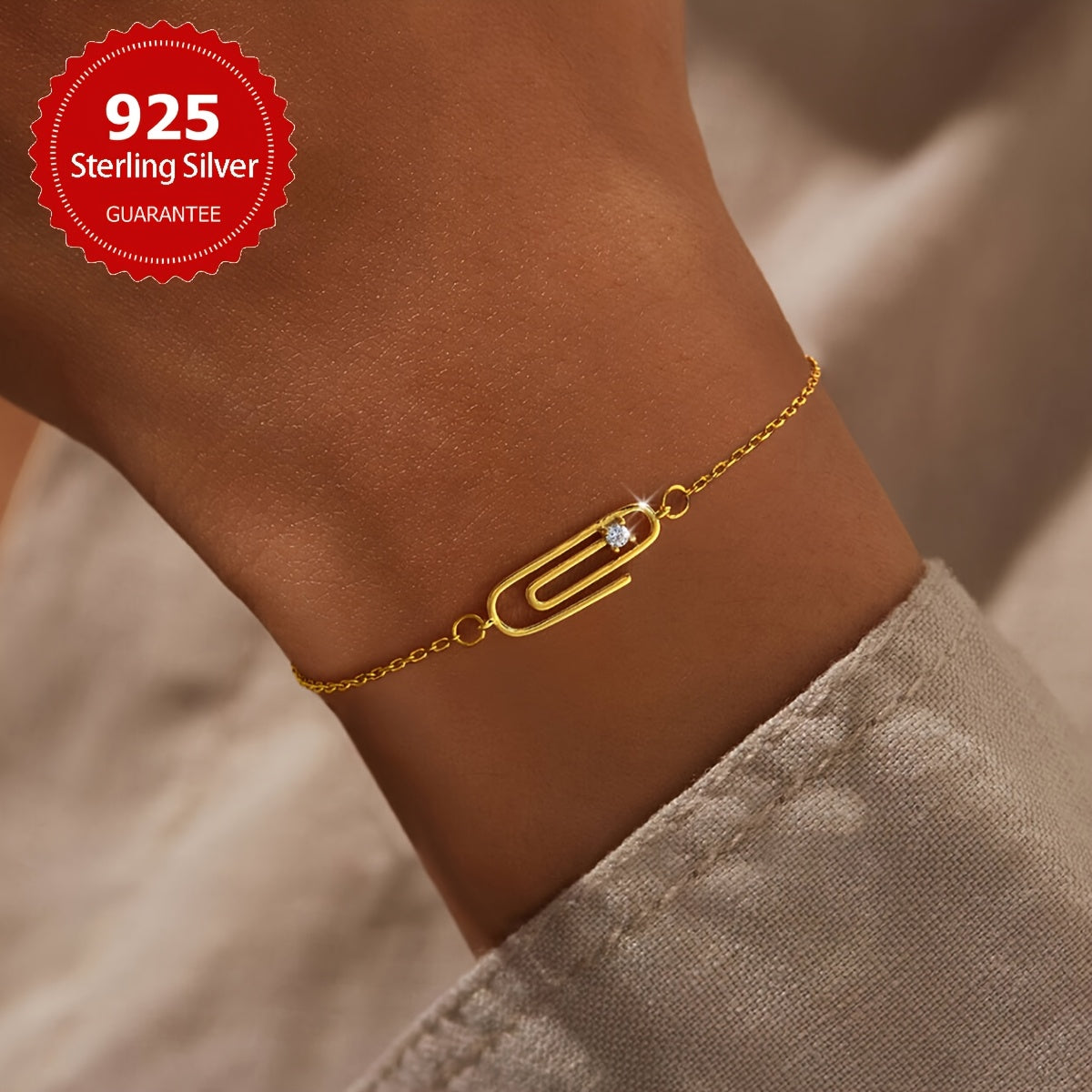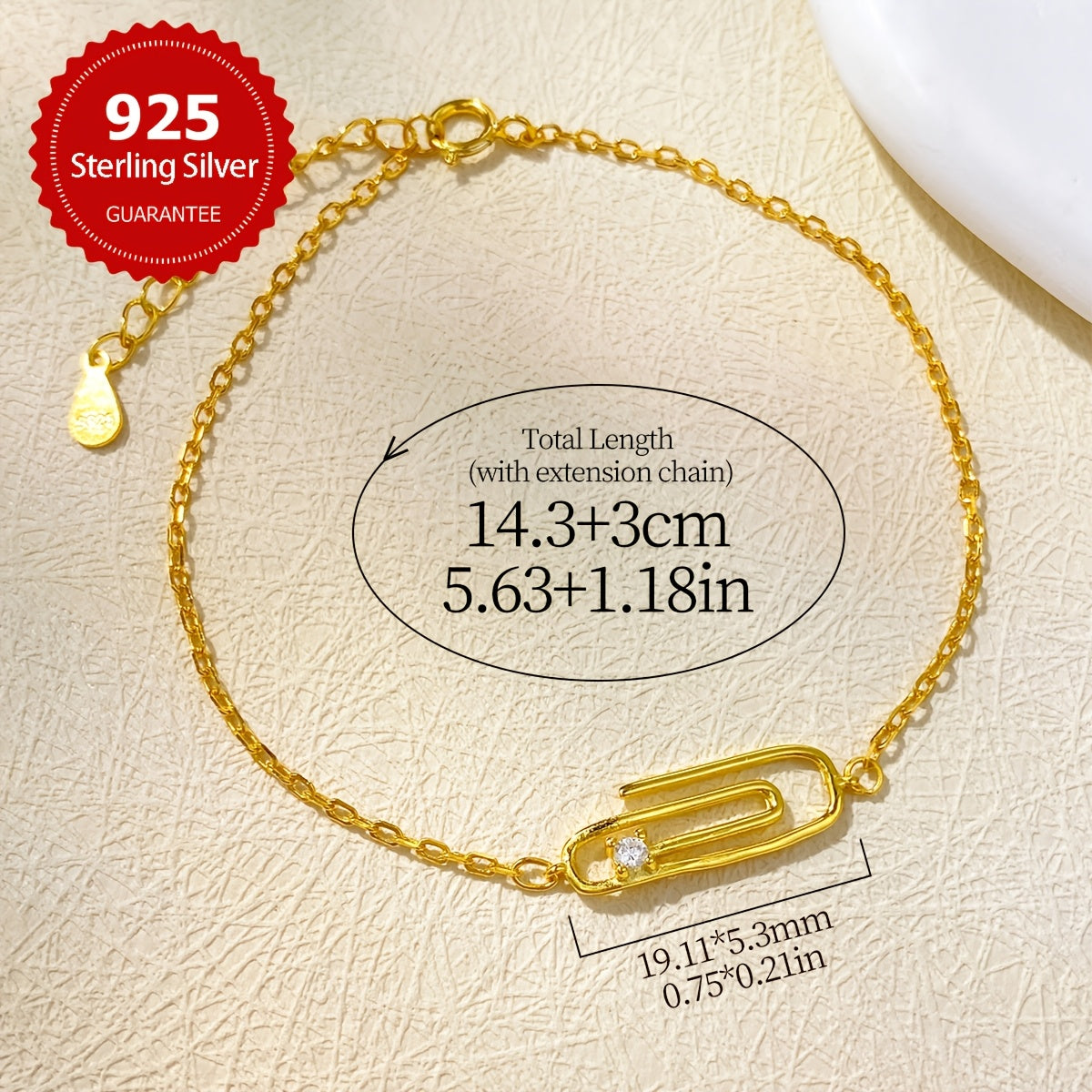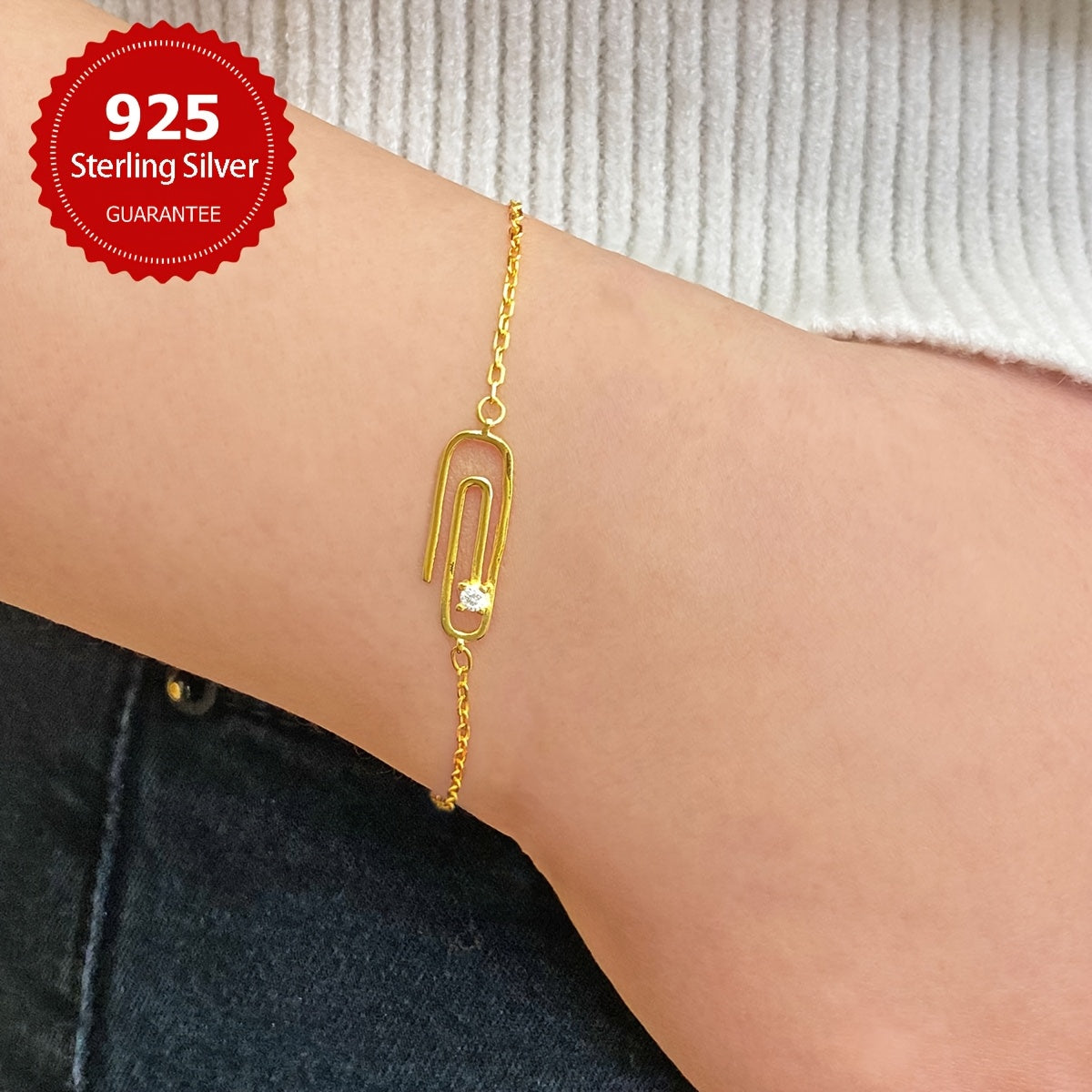 Add a touch of elegance to your outfit with this stunning paperclip bracelet. Made of 925 sterling silver and synthetic cubic zirconia, it is perfect for daily wear or as a gift for someone special.