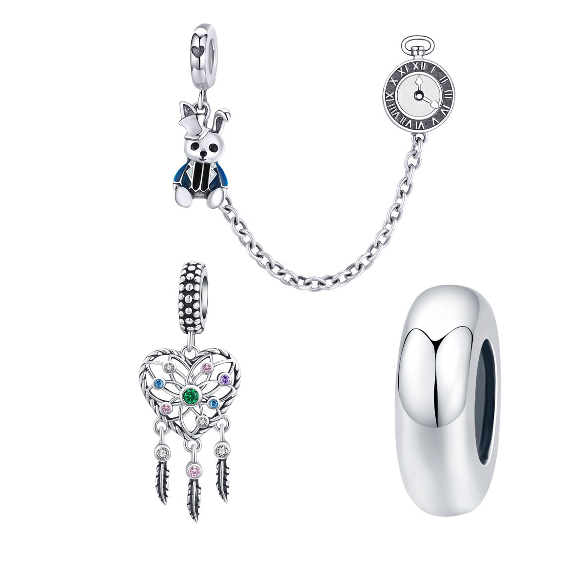 Add a touch of elegance to your DIY jewelry with this silver safety chain and dream catcher tassel bead. Perfect for bracelets and necklaces.