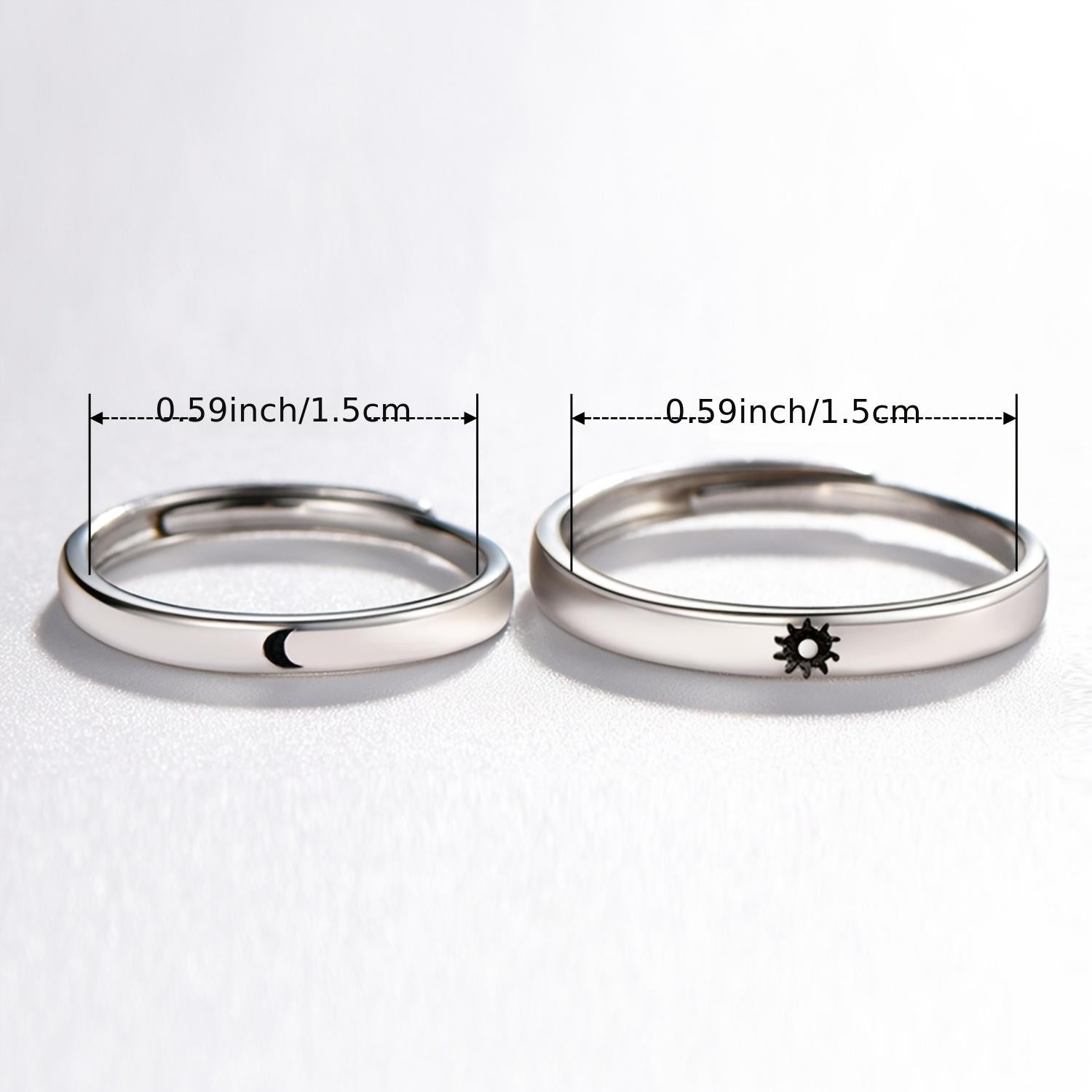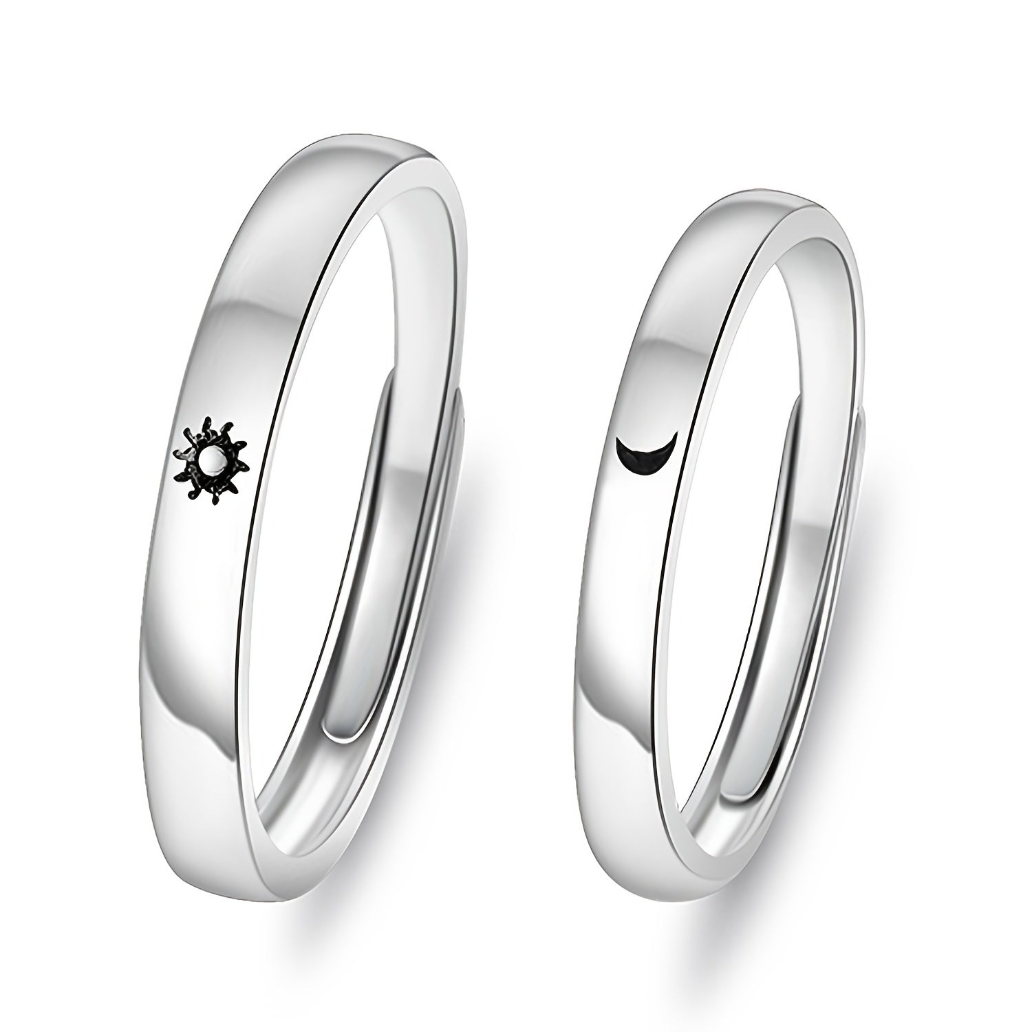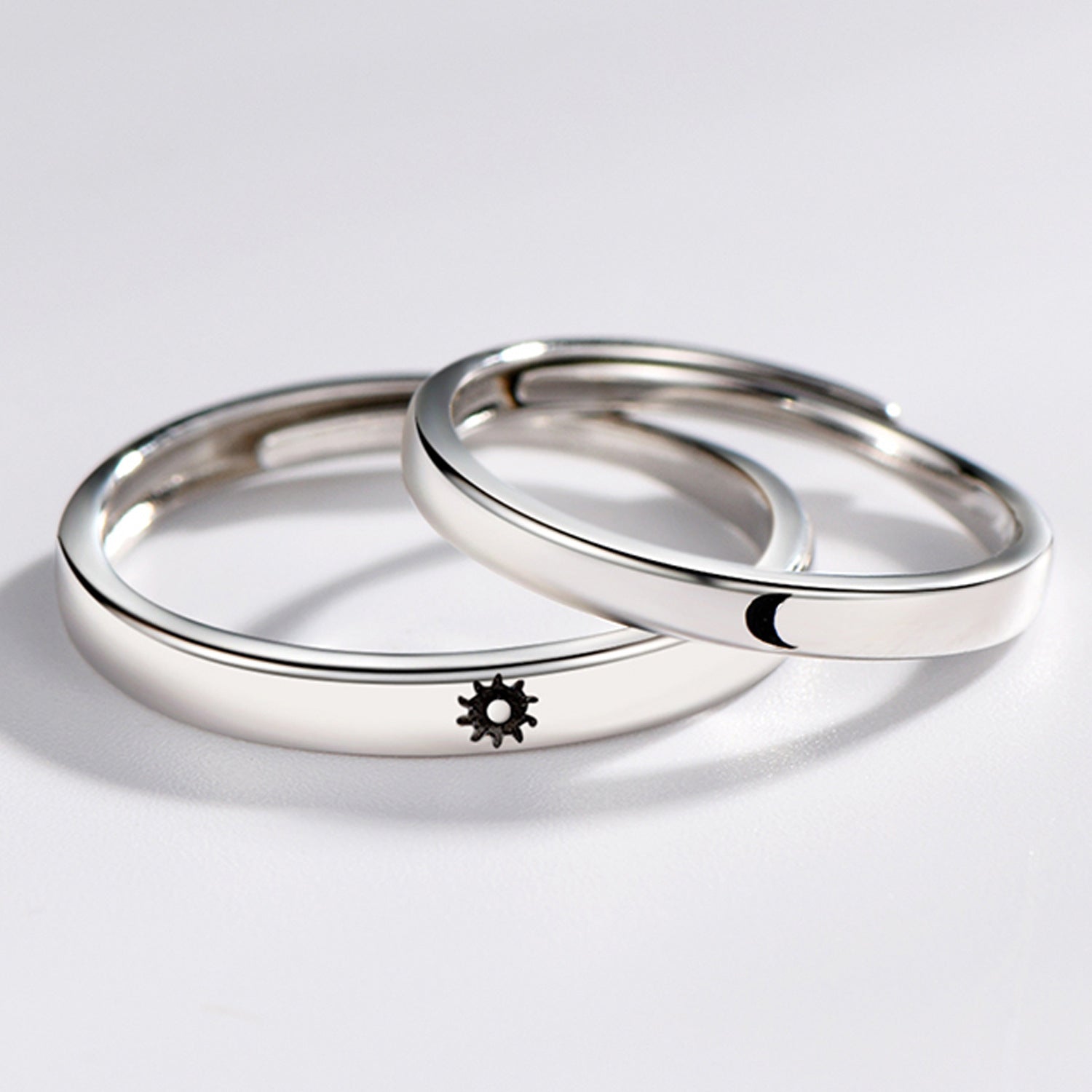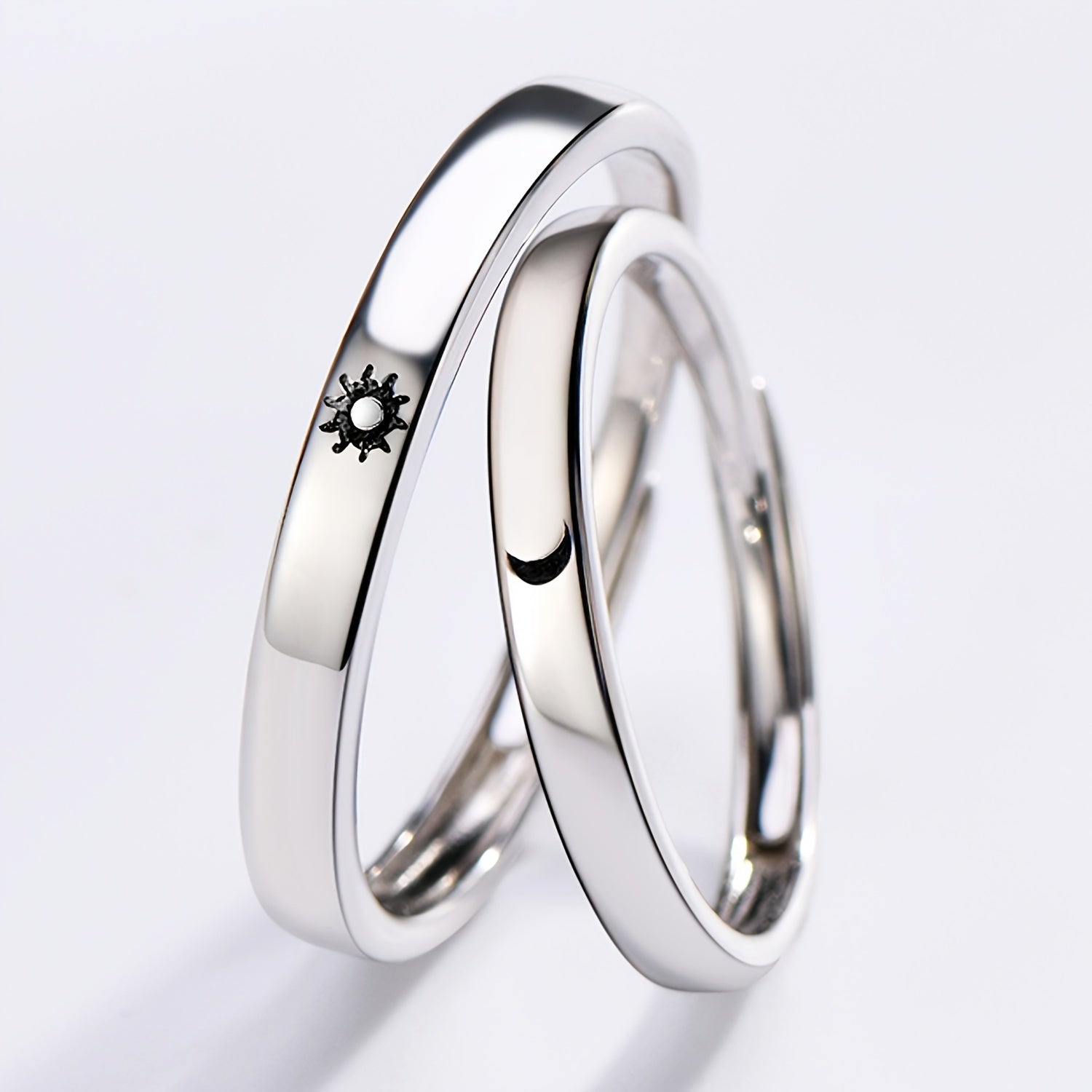 This beautiful set of couple rings features a sun and moon design, symbolizing the harmony between partners. The rings are made of high-quality 925 silver plated copper and are adjustable to fit most sizes.
