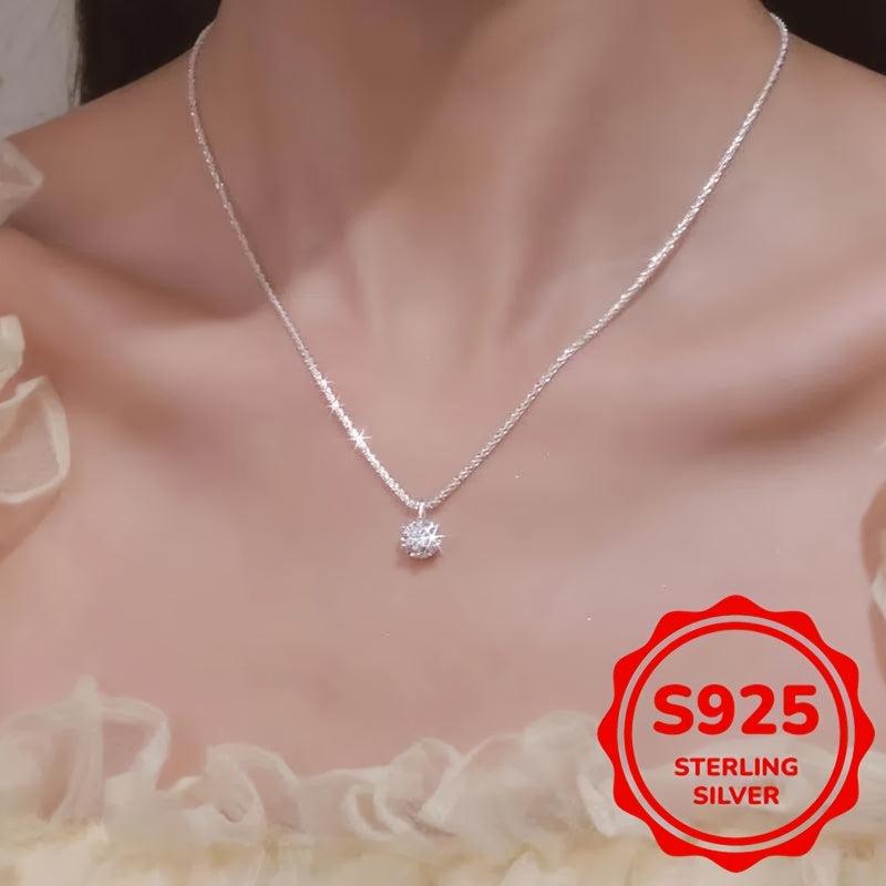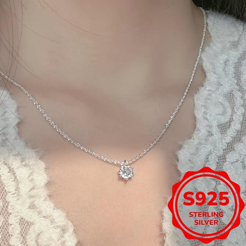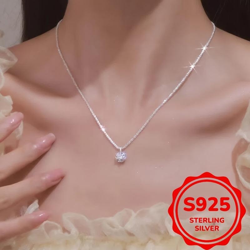 Elegant 925 silver necklace featuring classic six prong style with dazzling cubic synthetic zirconia inlay. The perfect gift for any occasion.