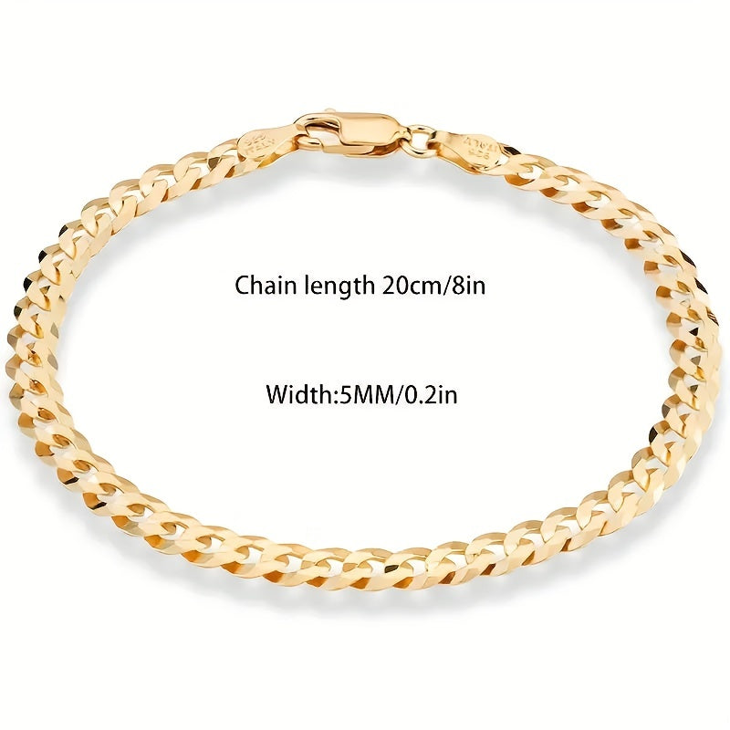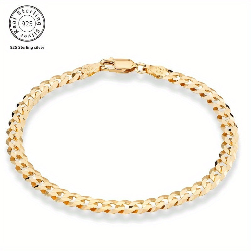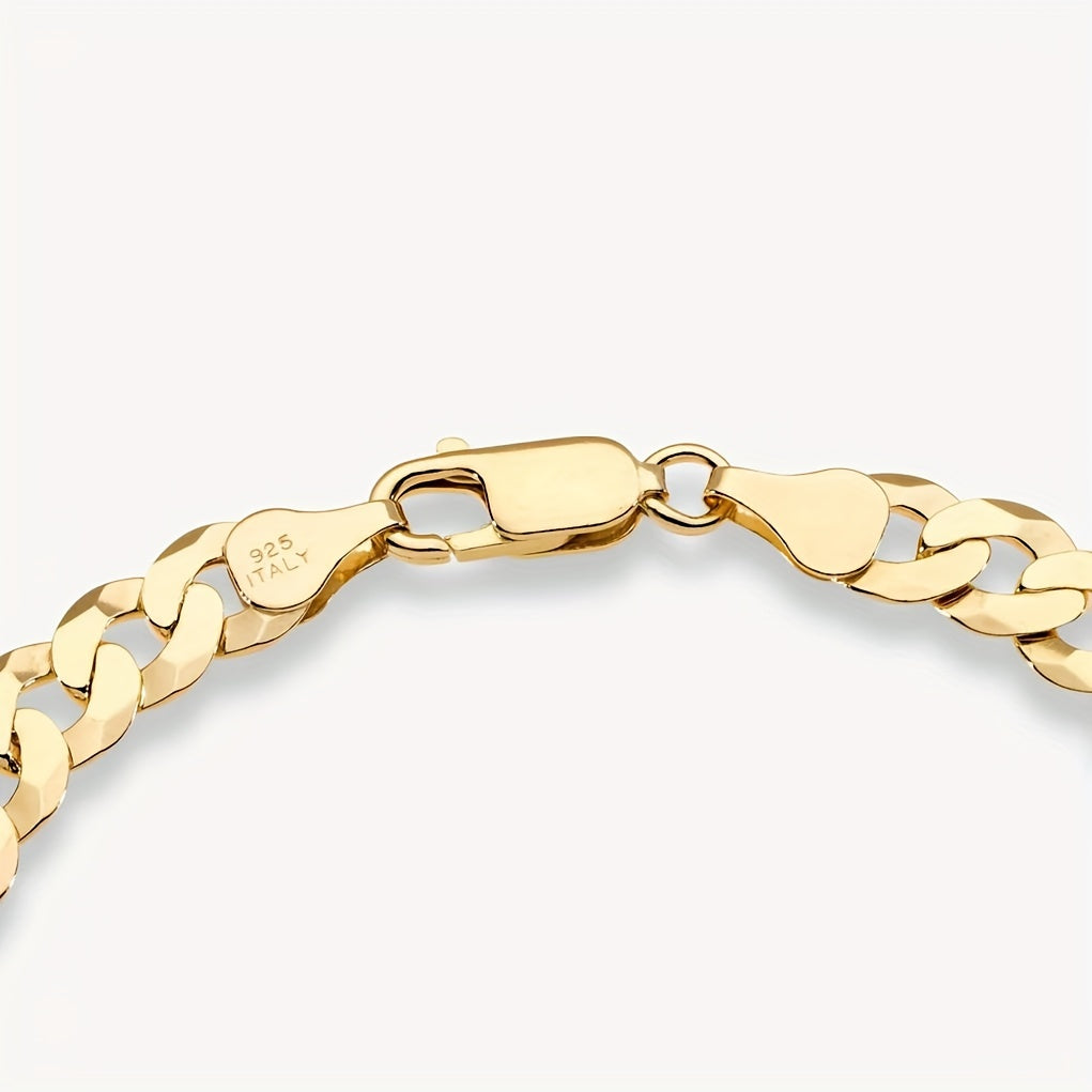 This 925 sterling silver Cuban bracelet is plated with 18k gold and features a solid diamond cut curb chain design. Perfect for men and women, this bracelet is a great Valentine's Day gift.
