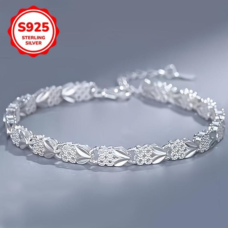Elevate your casual look with this vintage 925 Sterling Silver bracelet featuring an intricate leaf design. Perfect for everyday wear or as a thoughtful gift.