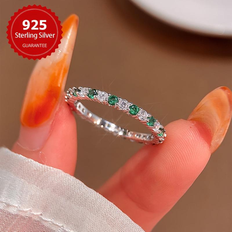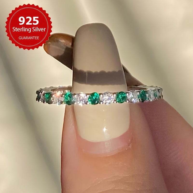 This exquisite ring features a dainty green synthetic zirconia stone set in 925 sterling silver, perfect for adding a touch of elegance to any outfit. An ideal gift for women who appreciate fine jewelry.