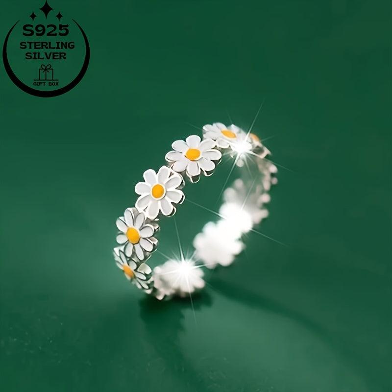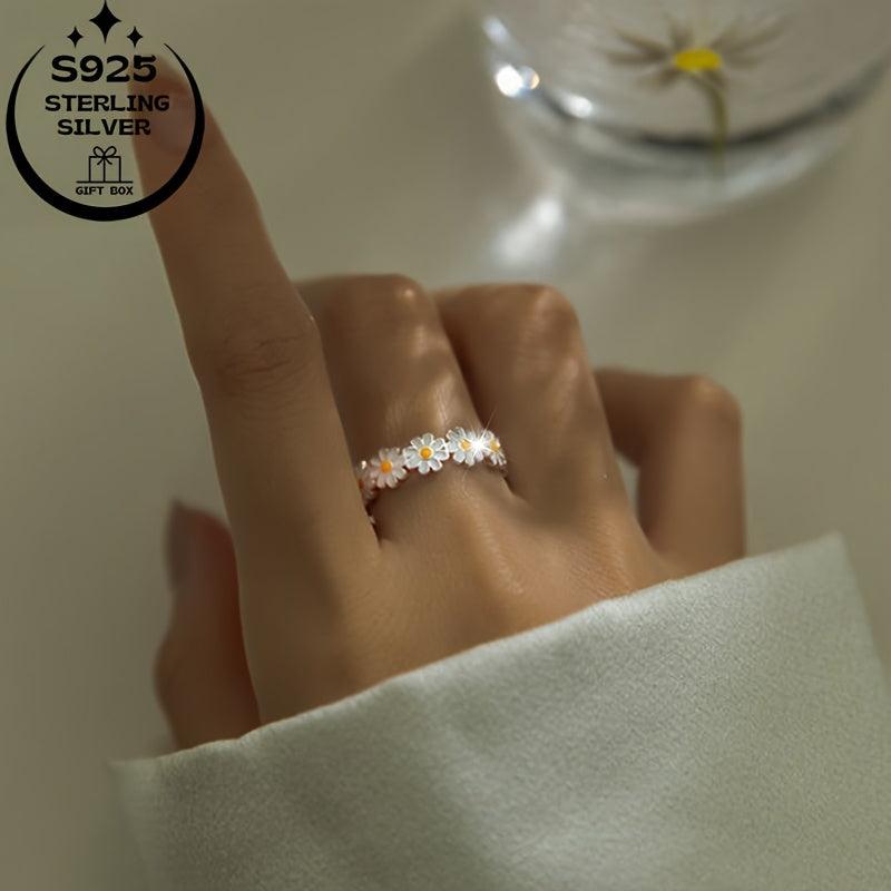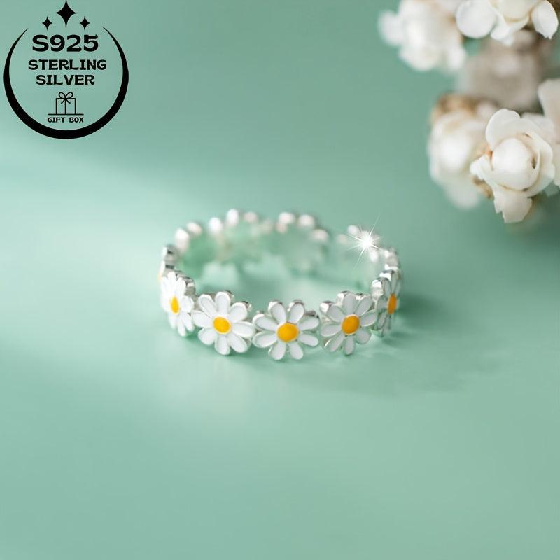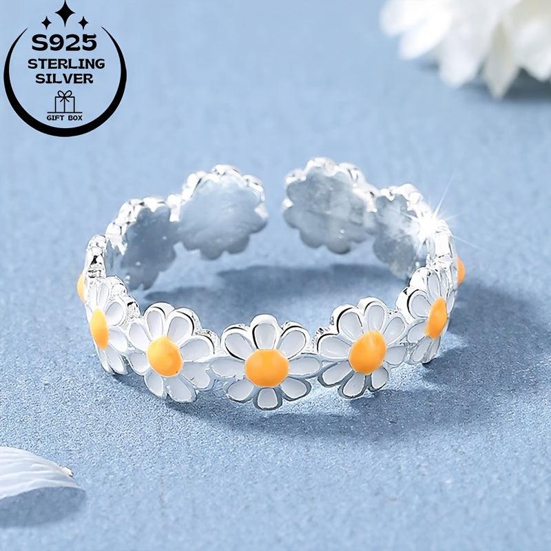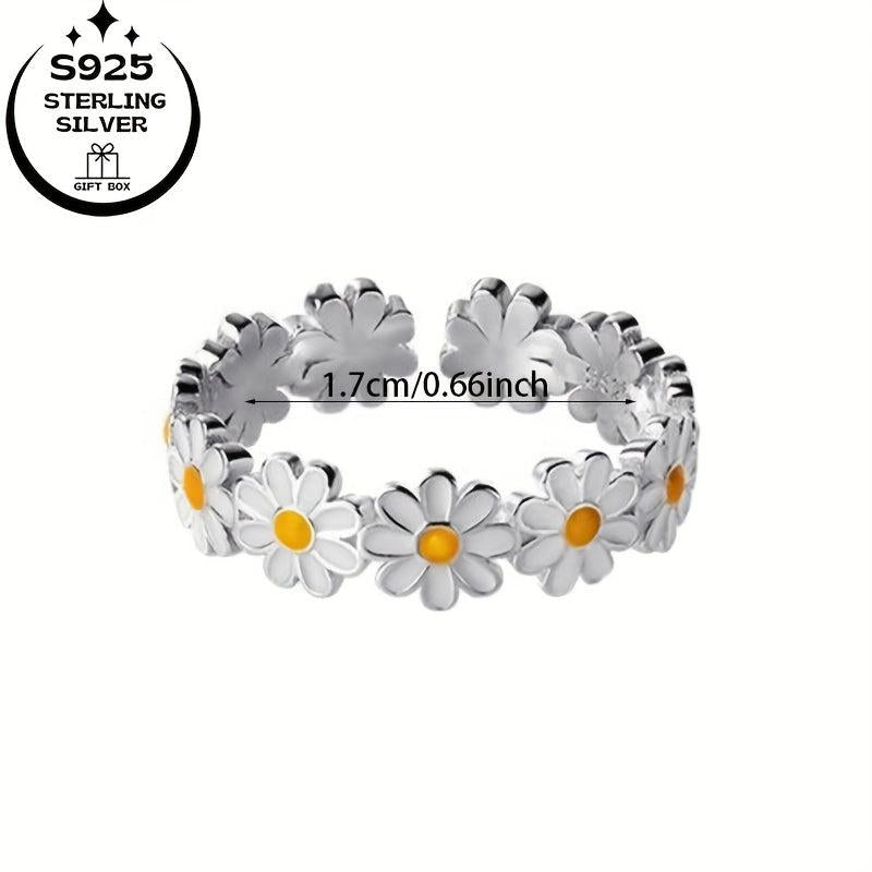 This beautiful daisy flower ring is crafted in 925 silver, making it a perfect gift for anniversaries or birthdays. The ring is adjustable and openable, and it comes in a box for easy gifting.