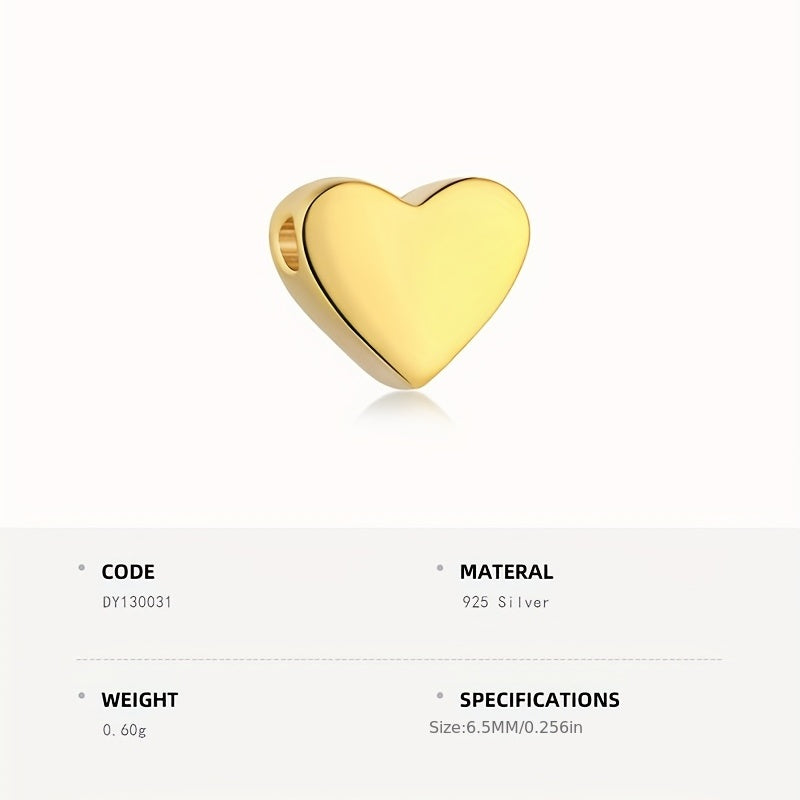 This golden heart-shaped bead is made of 925 silver and is perfect for DIY jewelry projects. Its large hole allows for easy stringing onto various cords and chains.