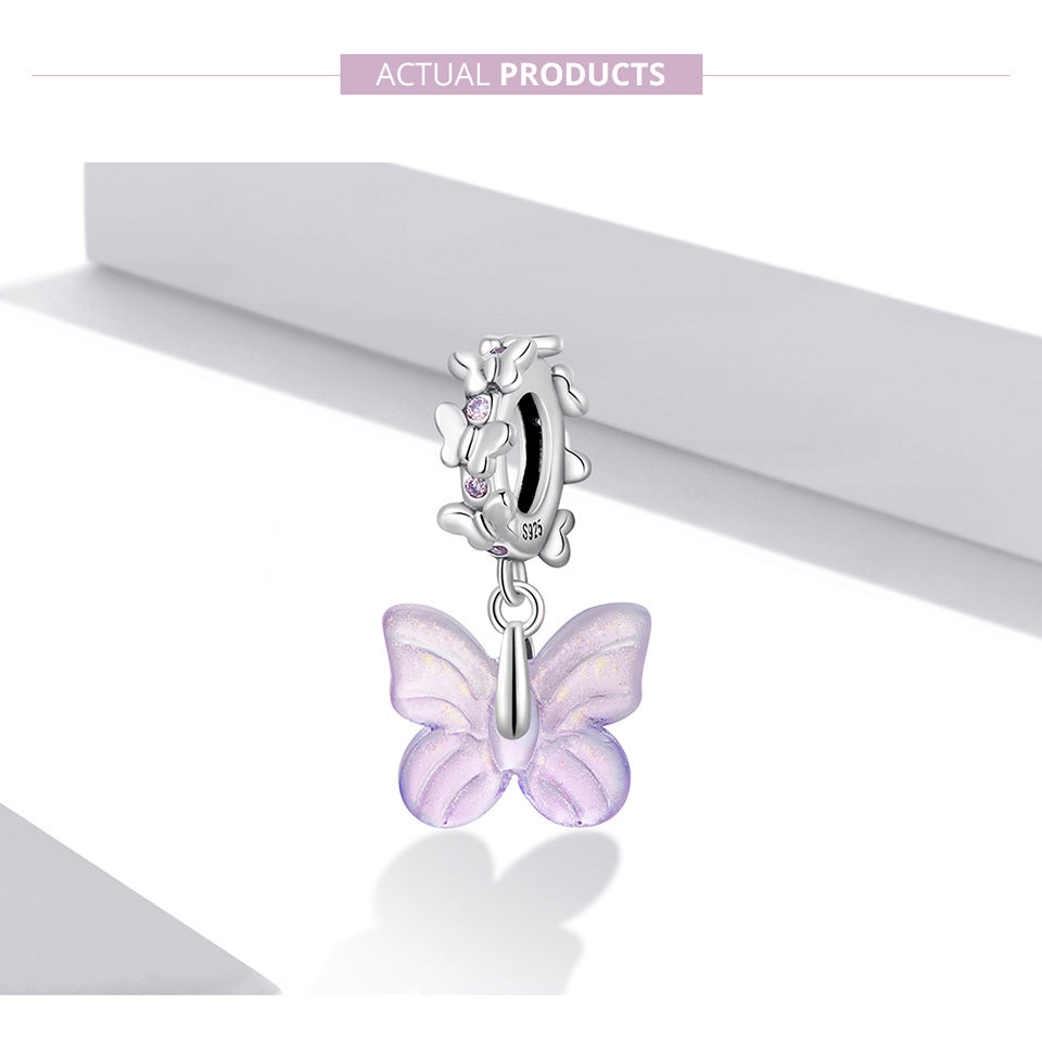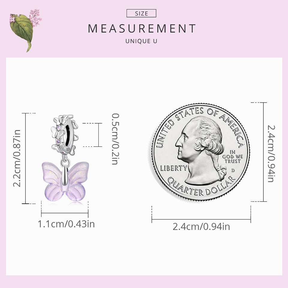 Add a touch of whimsy to your jewelry collection with this pink butterfly charm. Made from 925 Sterling Silver, this charm is perfect for bracelets and necklaces. Great gift for butterfly lovers.
