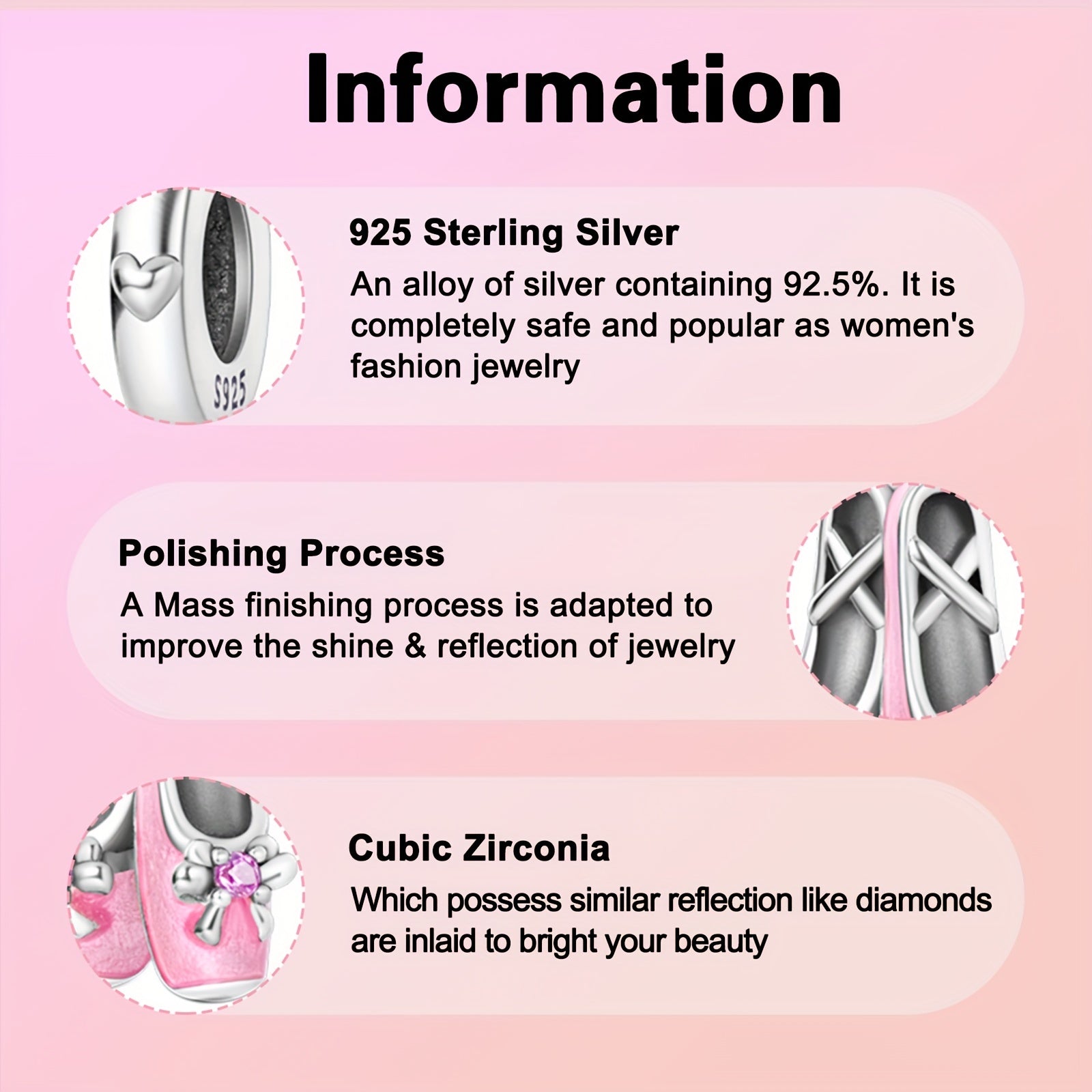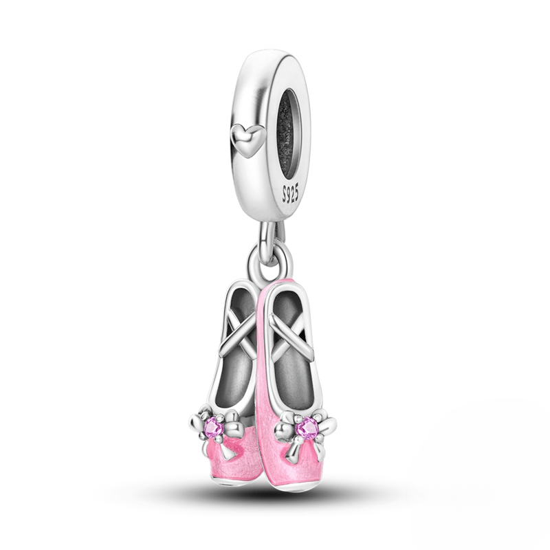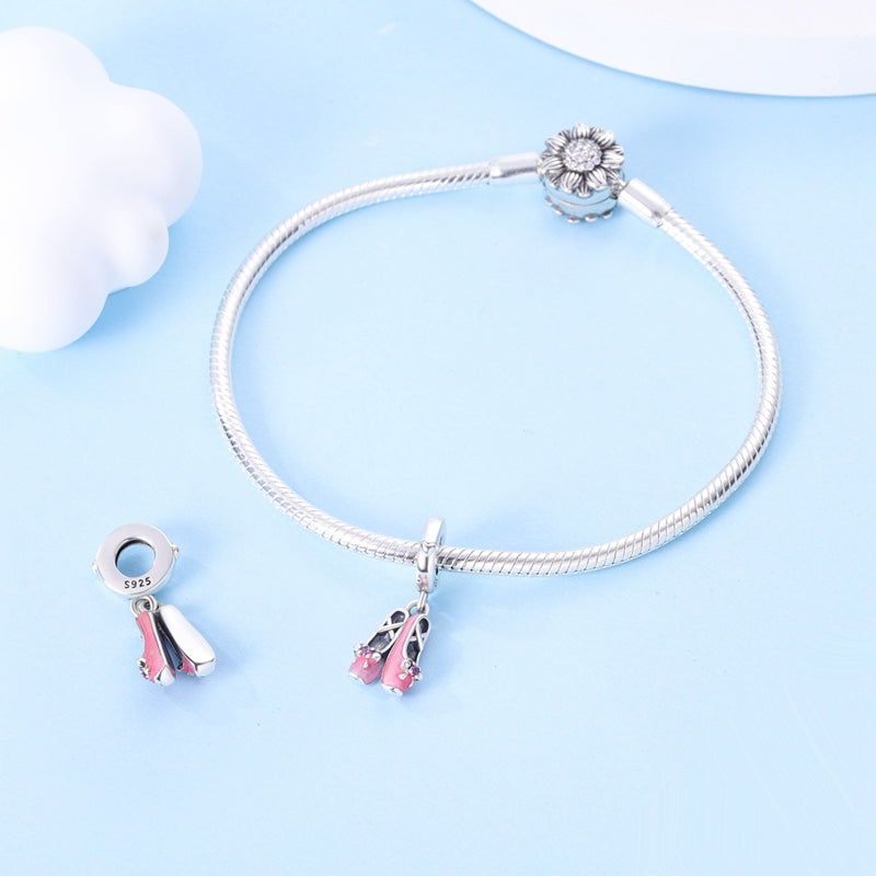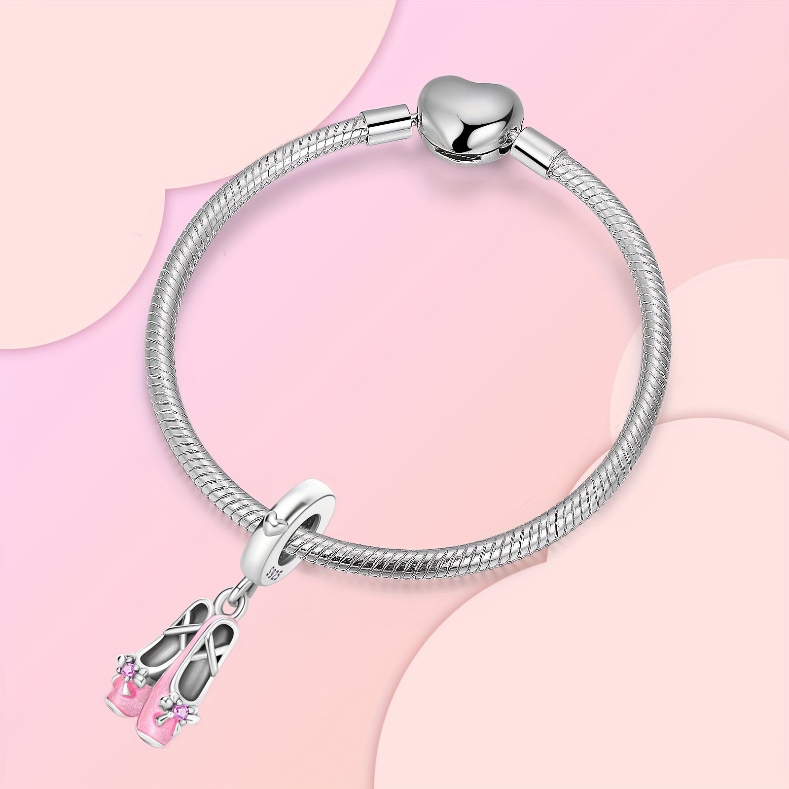This charming pendant bead features pink bow ballet shoes design, made of 925 silver. Perfect for bracelets, charms, and necklaces.