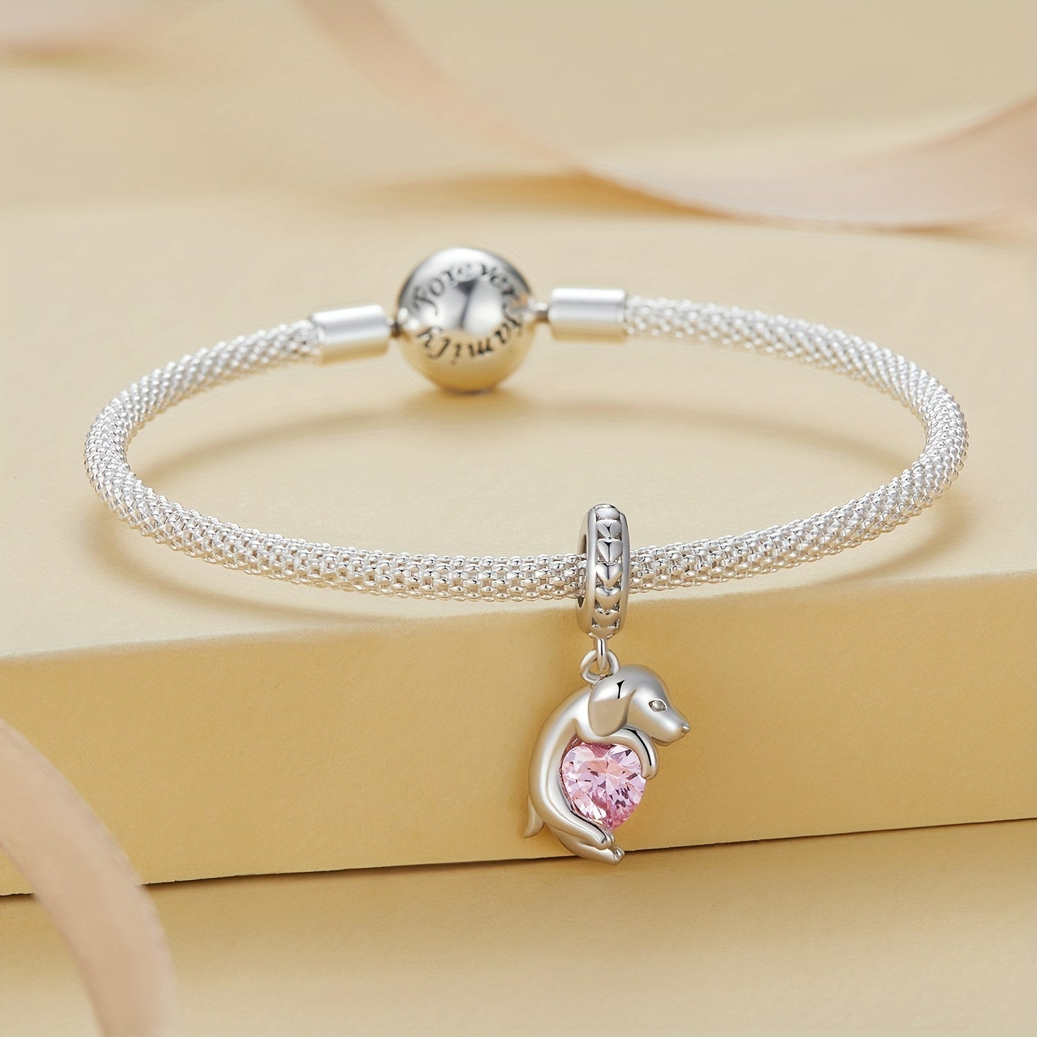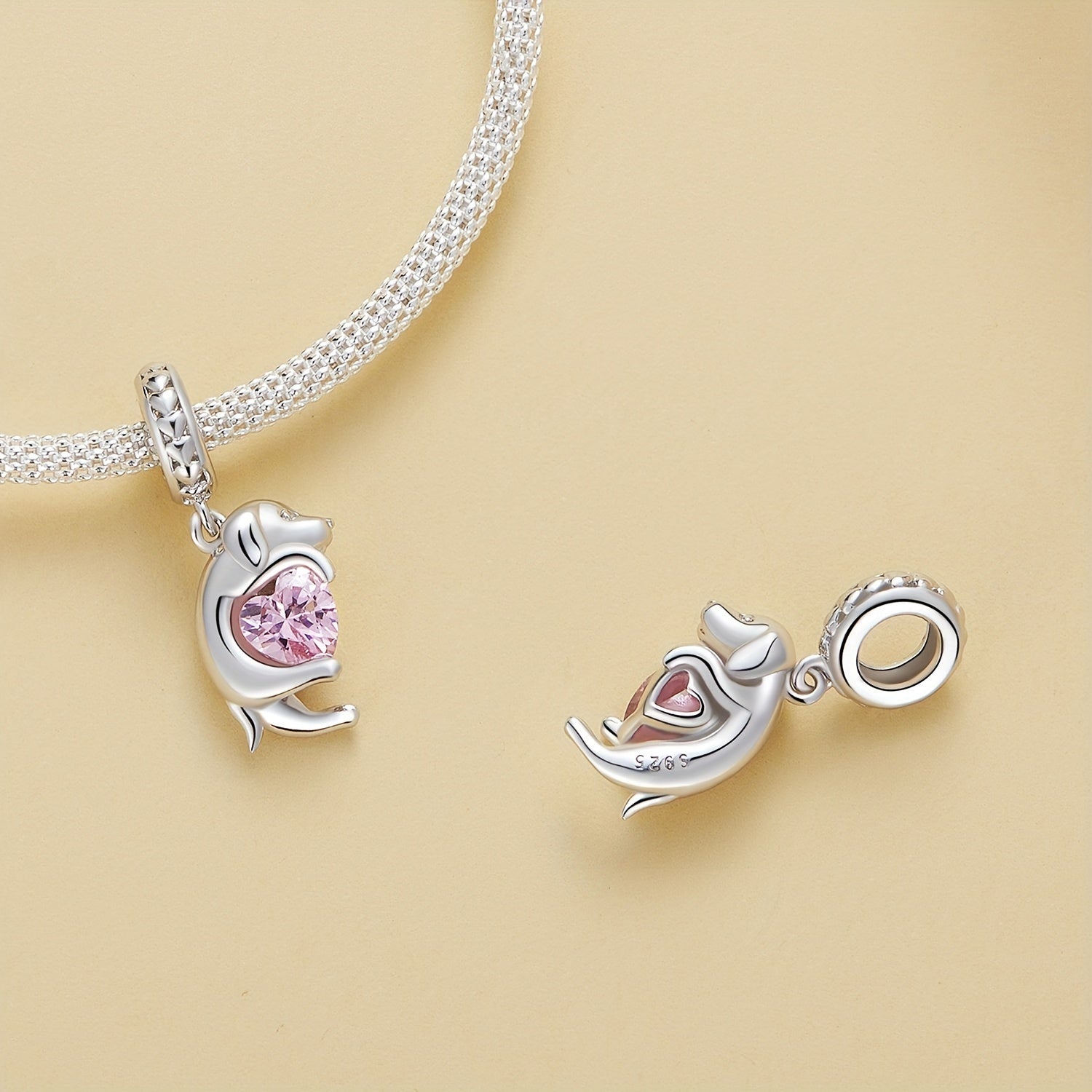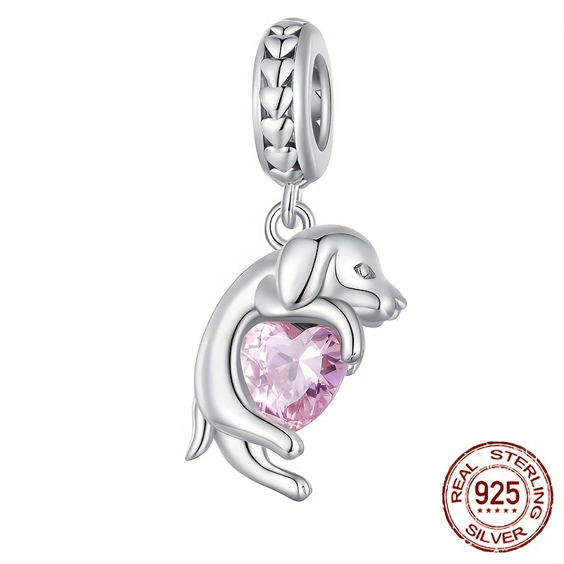 Adorn your jewelry with this adorable S925 pure silver golden retriever pendant that has a heart design. Perfect for DIY accessories.