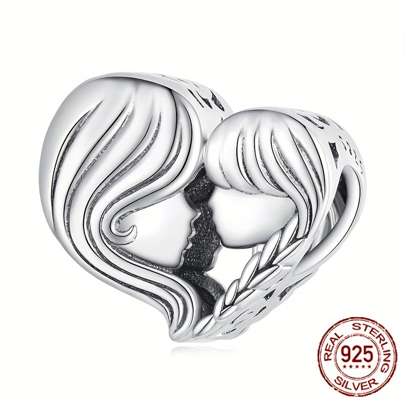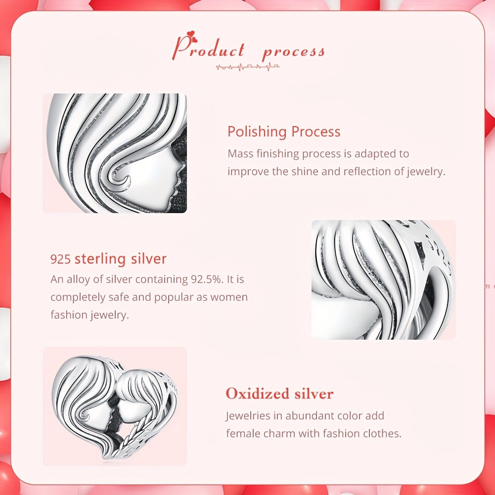 This beautiful bracelet is made of S925 sterling silver featuring love beads in heart shape, symbolizing the warm love between mother and daughter.