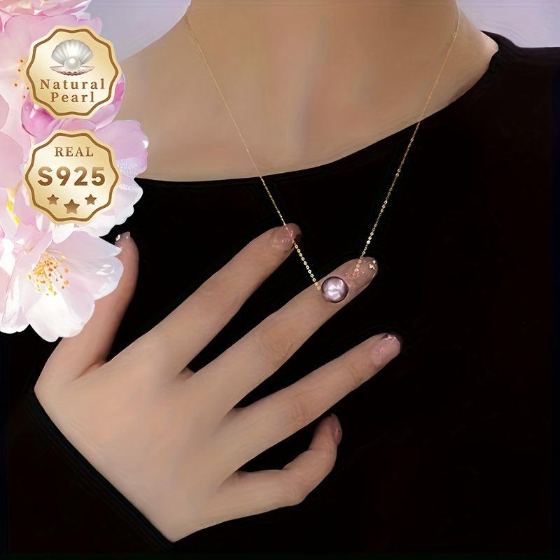 Elegant necklace featuring a natural freshwater pearl pendant on a collarbone chain. Made of high-quality S925 silver, perfect for everyday wear or special occasions.