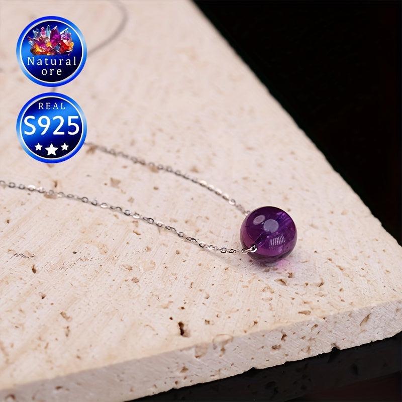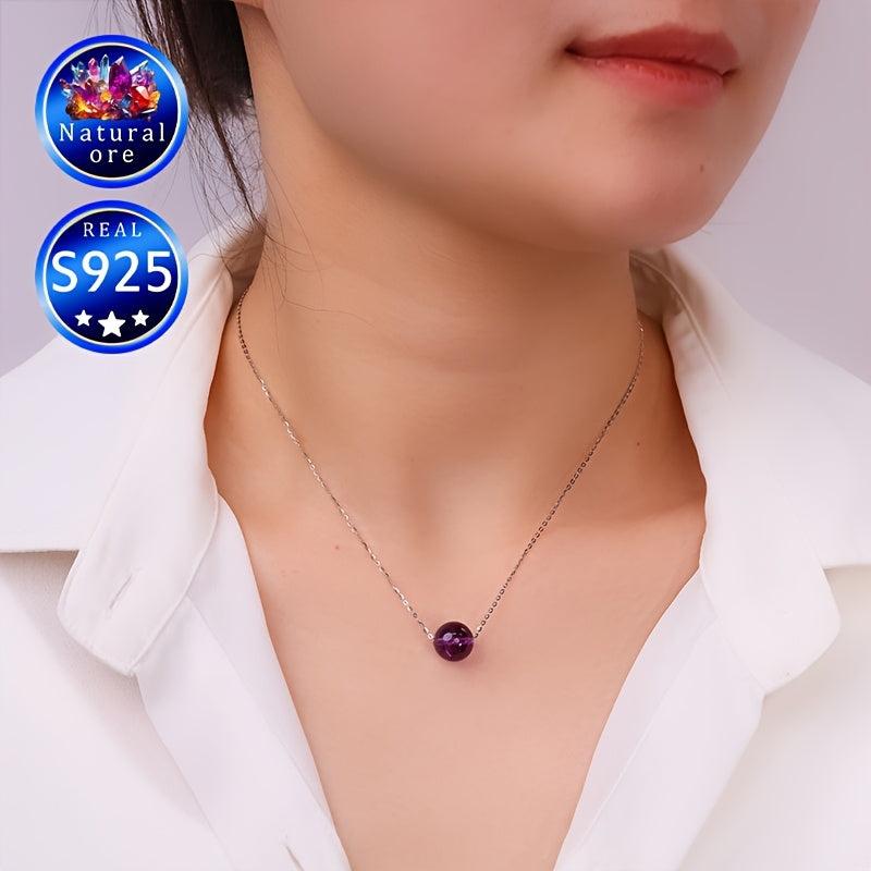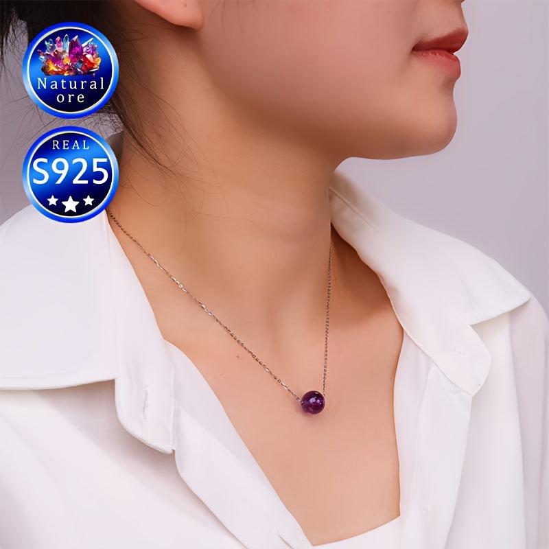 This stunning S925 silver necklace features a purple natural stone, making it suitable for daily wear, dating, work, travel, and as a thoughtful gift. Each piece showcases the unique variations in shade and pattern of natural minerals.