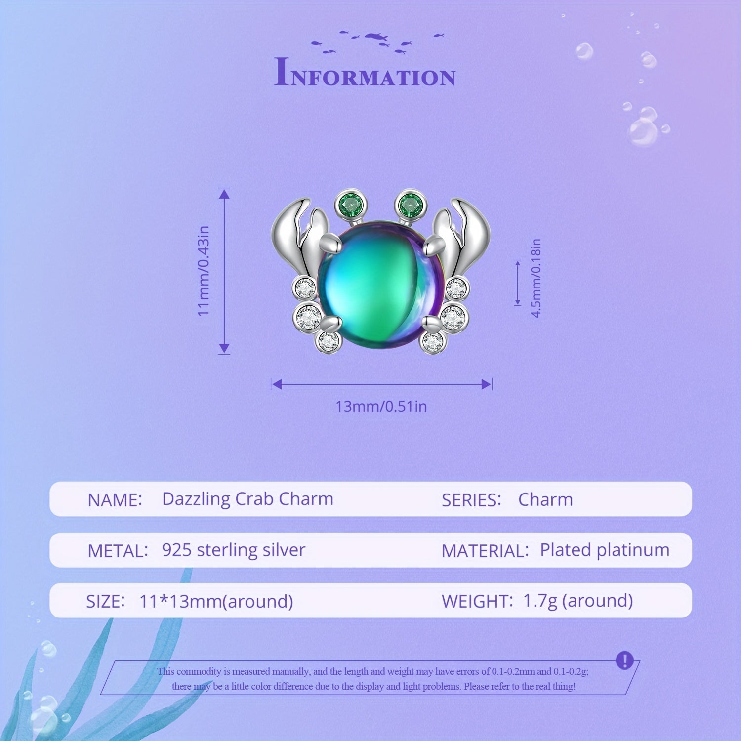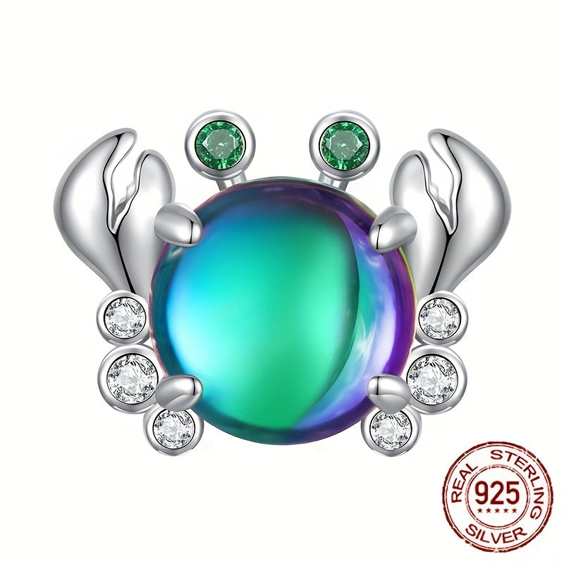 Add a touch of color and fun to your bracelet with this green crystal crab charm pendant. Made of S925 sterling silver, this beaded charm is perfect for DIY jewelry projects.