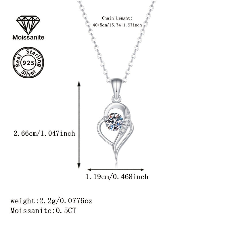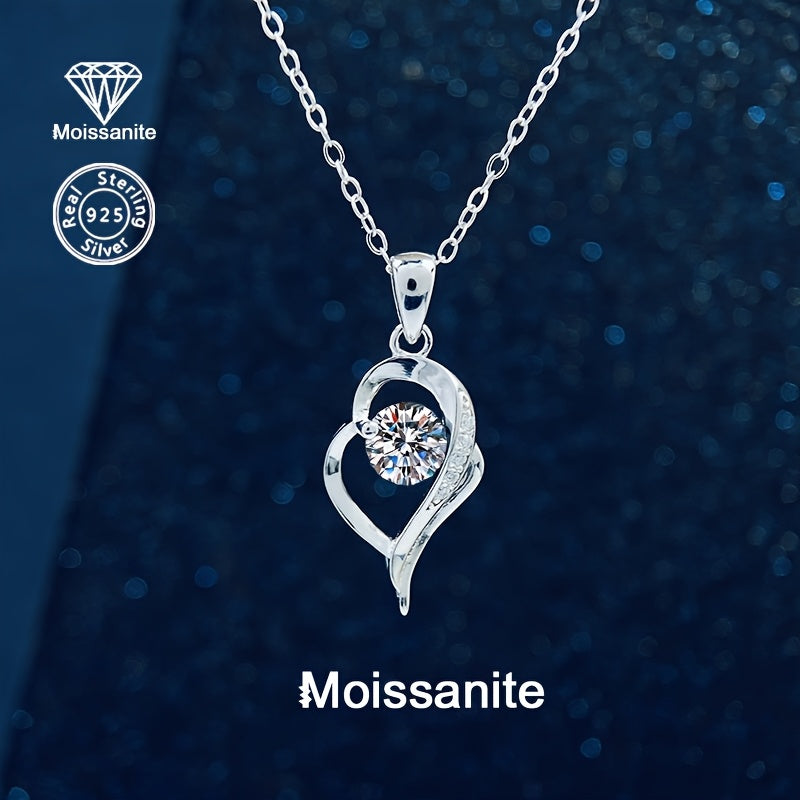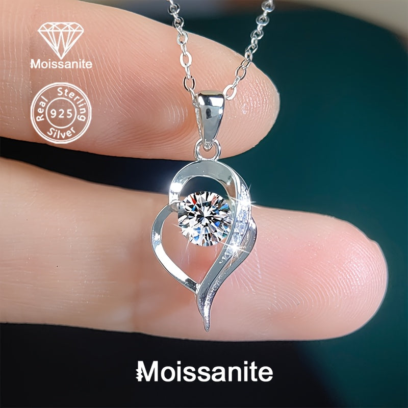 Elegant and versatile heart pendant necklace for women with a stunning 1 carat moissanite set in high-quality S925 silver. Perfect for weddings, anniversaries, or daily wear.