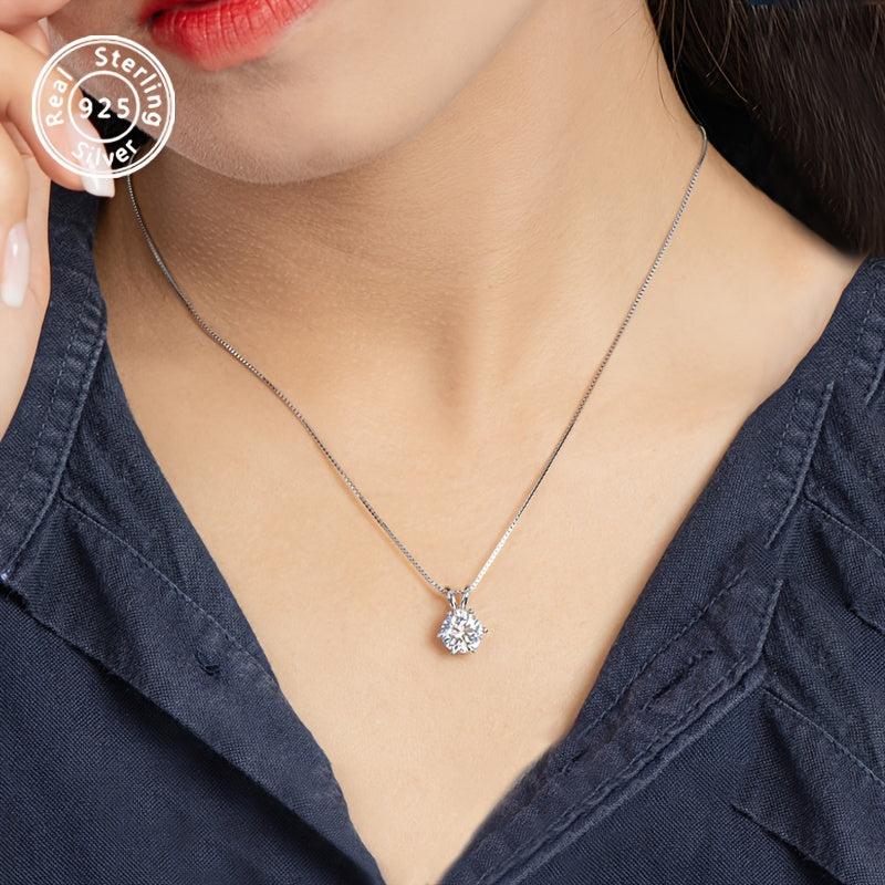 1 Ct Moissanite 925 Silver Necklace Women Jewelry Gift