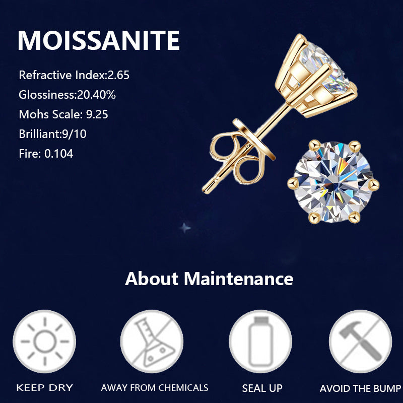 These classic stud earrings are made with 18K gold plated moissanite stones set in 925 sterling silver. Perfect for daily wear or as a gift for Mardi Gras.