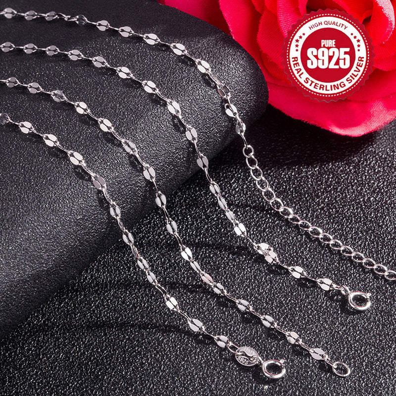 Elegant sterling silver lip chain with collarbone pendant tile chain and long tail chain sweater chain.