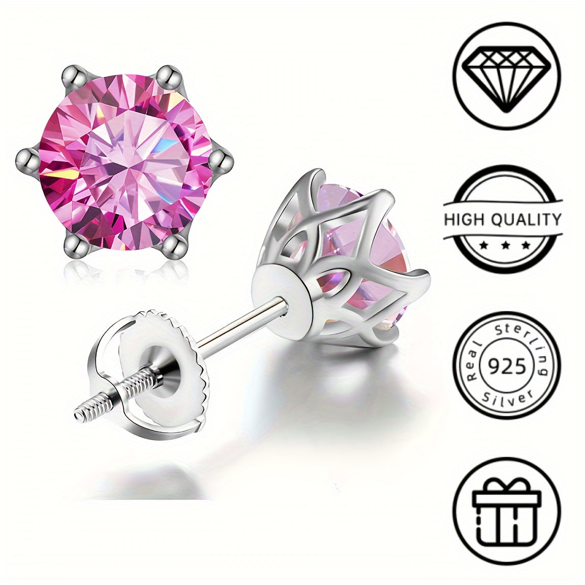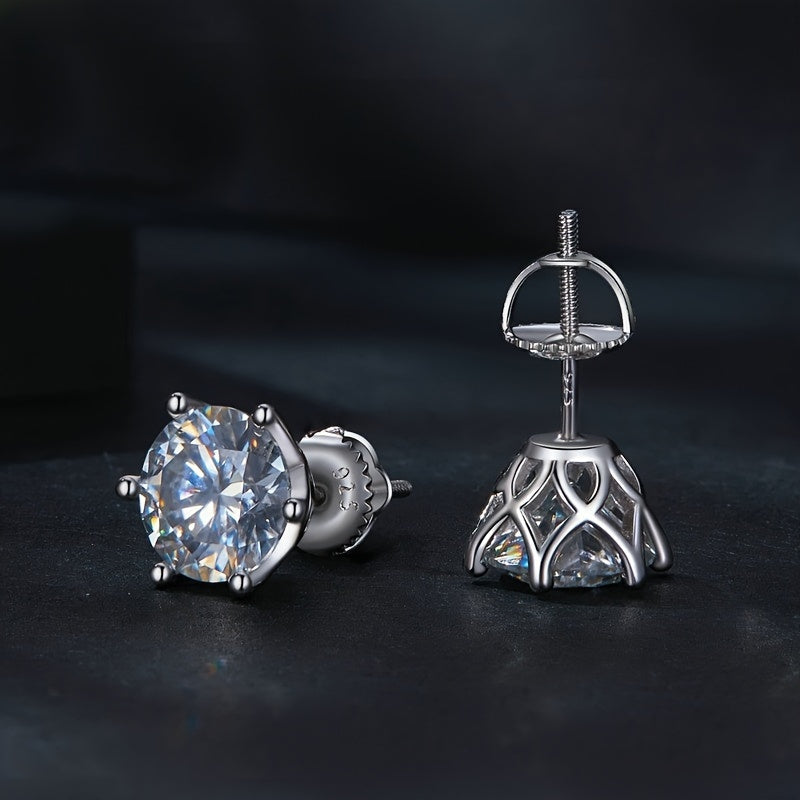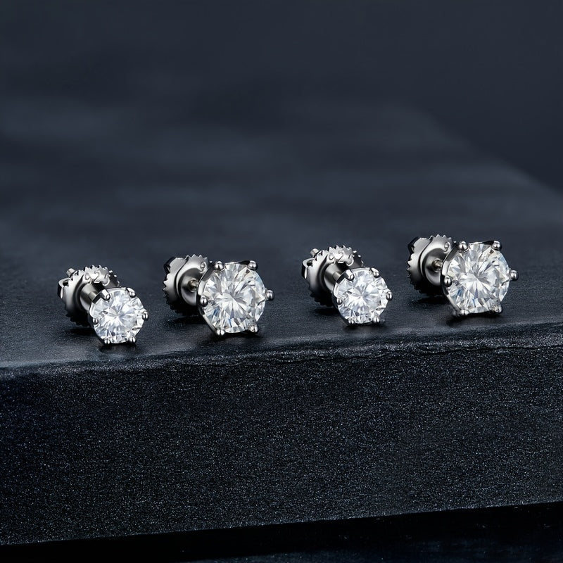 Sparkling pair of Moissanite earrings in solid 925 sterling silver. Perfect for men and women on special occasions like weddings and Christmas.