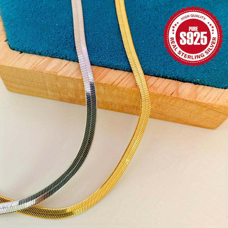 This minimalist flat snake chain necklace is made of S925 silver, perfect for a fashionable Christmas gift. It adds a touch of elegance to any outfit.