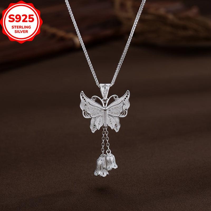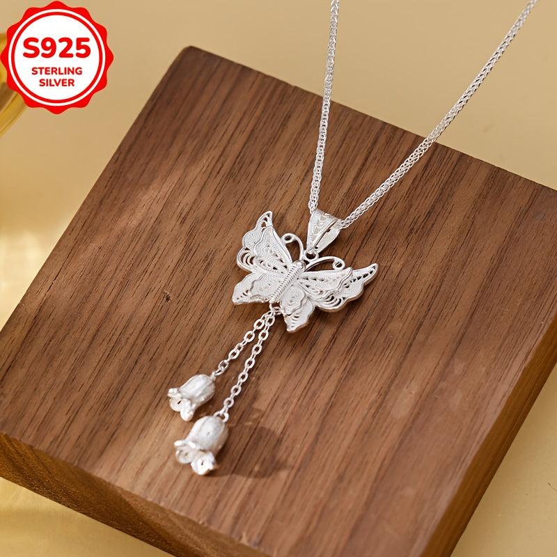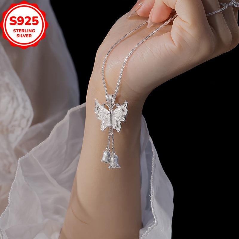 This elegant necklace features a low-allergy butterfly design with a tassel pendant and Lily of the Valley accents. It makes a perfect gift for women, as it is anti-oxidation and comes in a gift box.