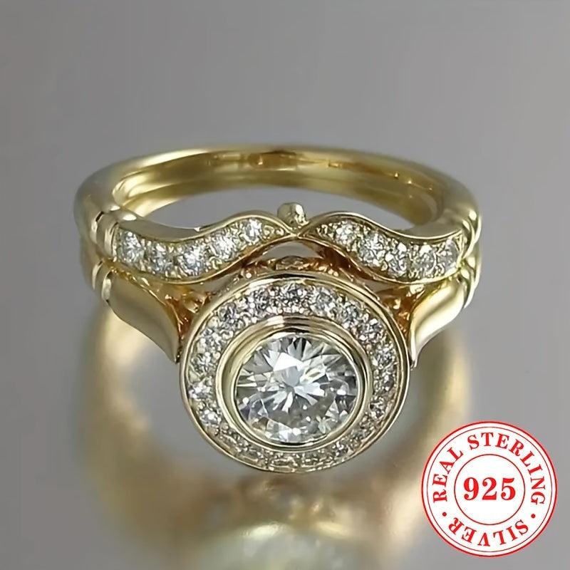 This stunning 2-piece wedding ring set is made of high-quality S925 sterling silver with synthetic cubic zirconia stones. Perfect for engagement, marriage, and anniversary celebrations.