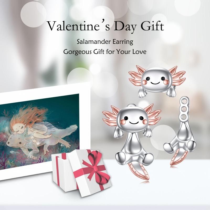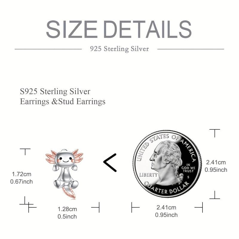 Adorable 925 sterling silver axolotl earrings perfect for women. These fun animal earrings are hypoallergenic and make a great birthday gift.