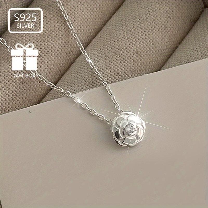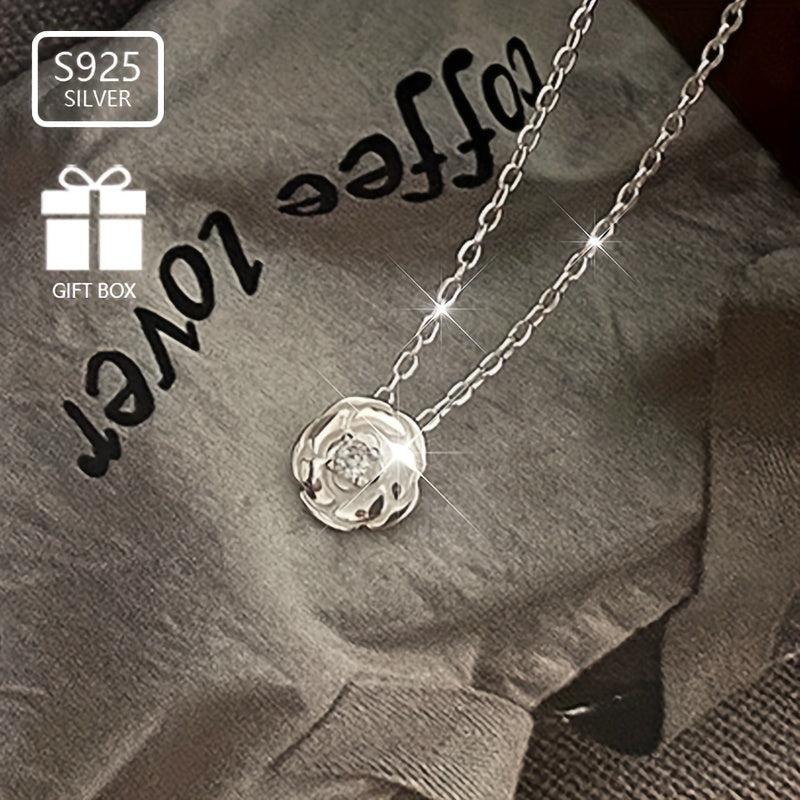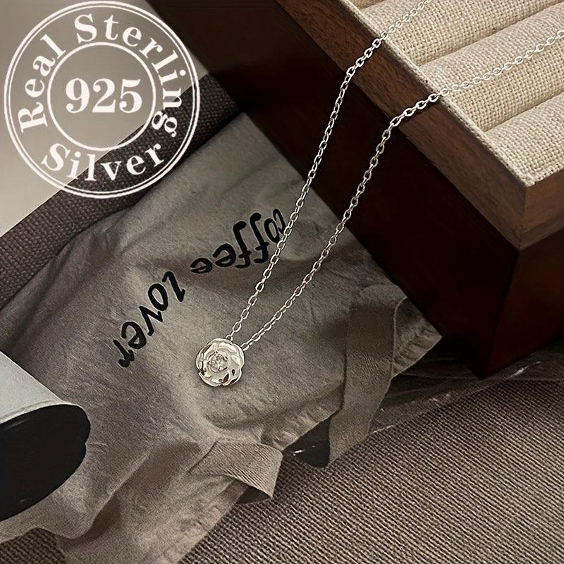 This minimalist camellia pendant necklace is made of hypoallergenic 925 sterling silver, perfect for everyday wear.