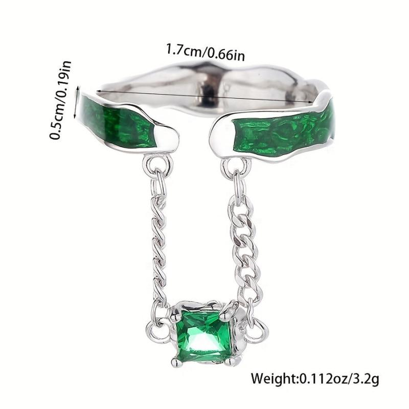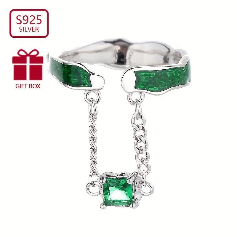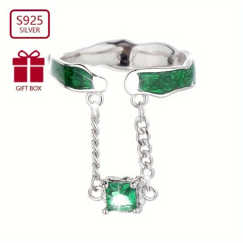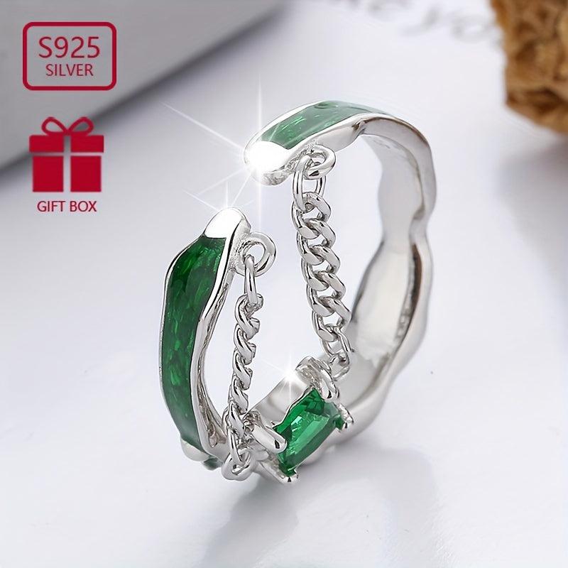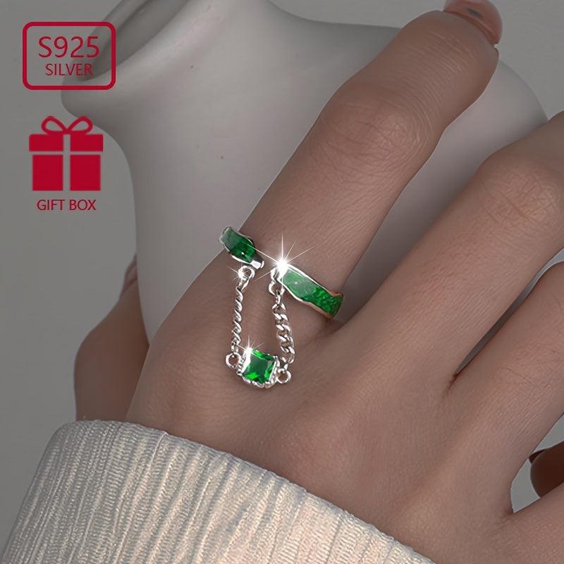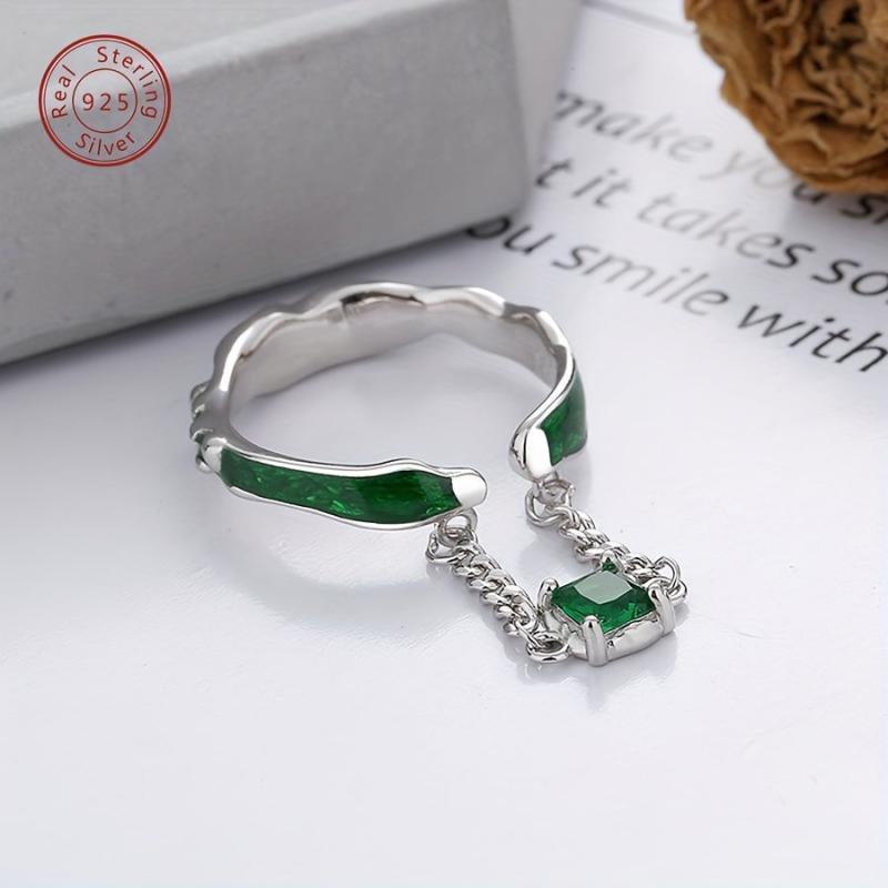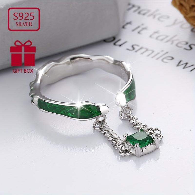 This stunning 925 silver open ring features a green zirconia pendant. It is a retro light style ring suitable for parties and as a gift for women. Weighs 3.2g.