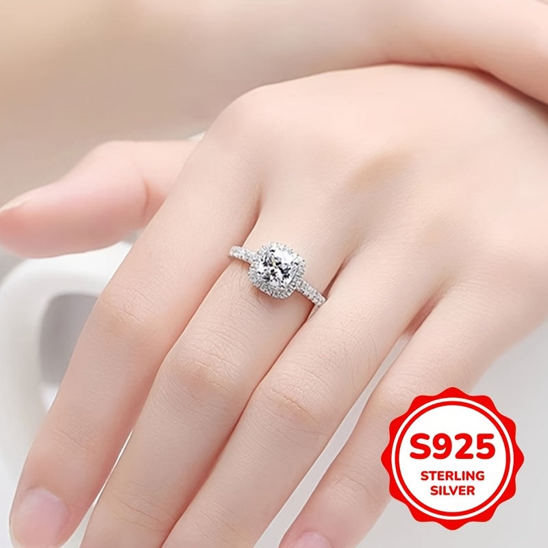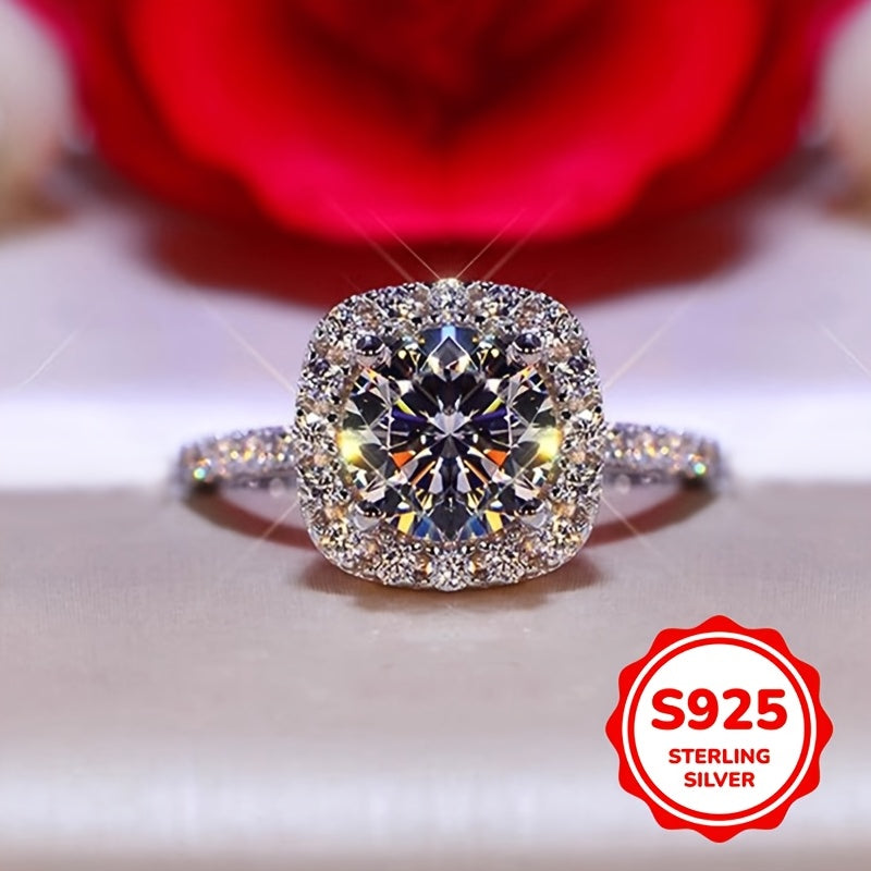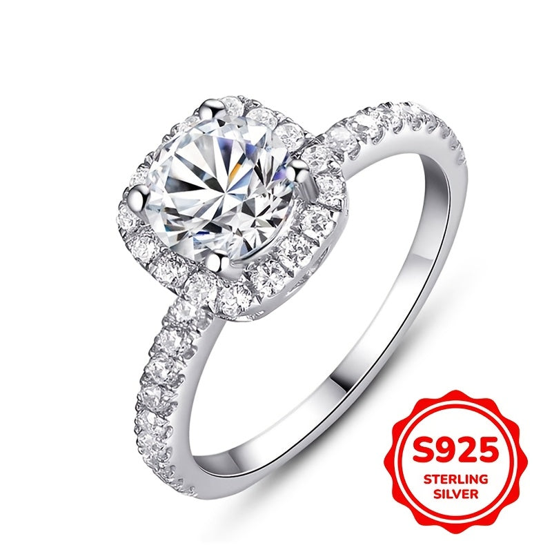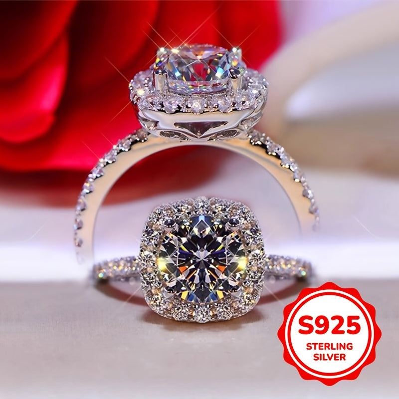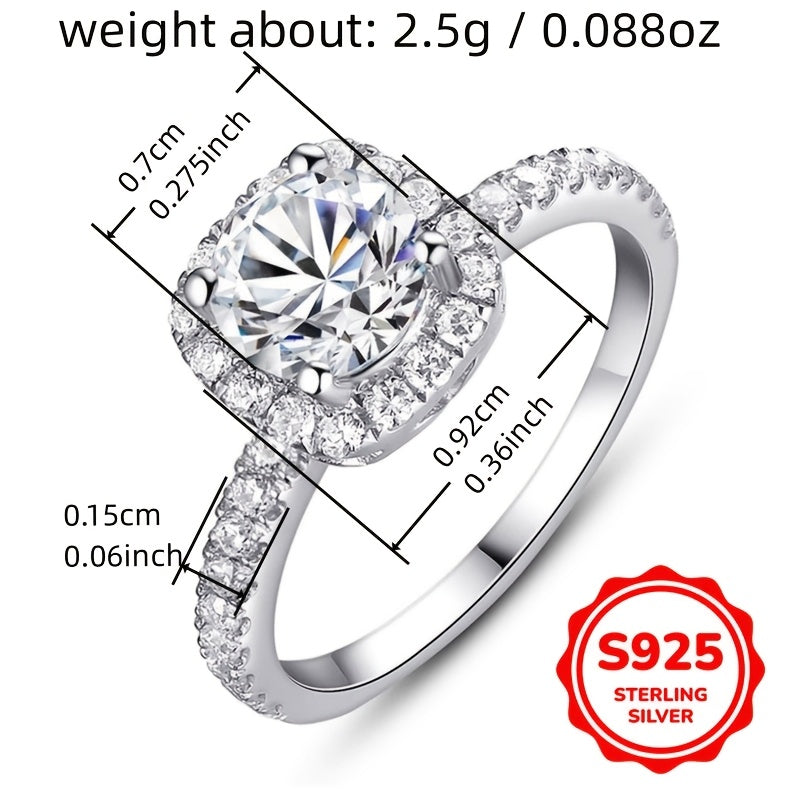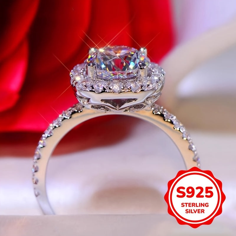 Add timeless elegance to your style with this stunning 925 sterling silver engagement ring featuring a round synthetic cubic zirconia stone in a halo 4 prong setting.