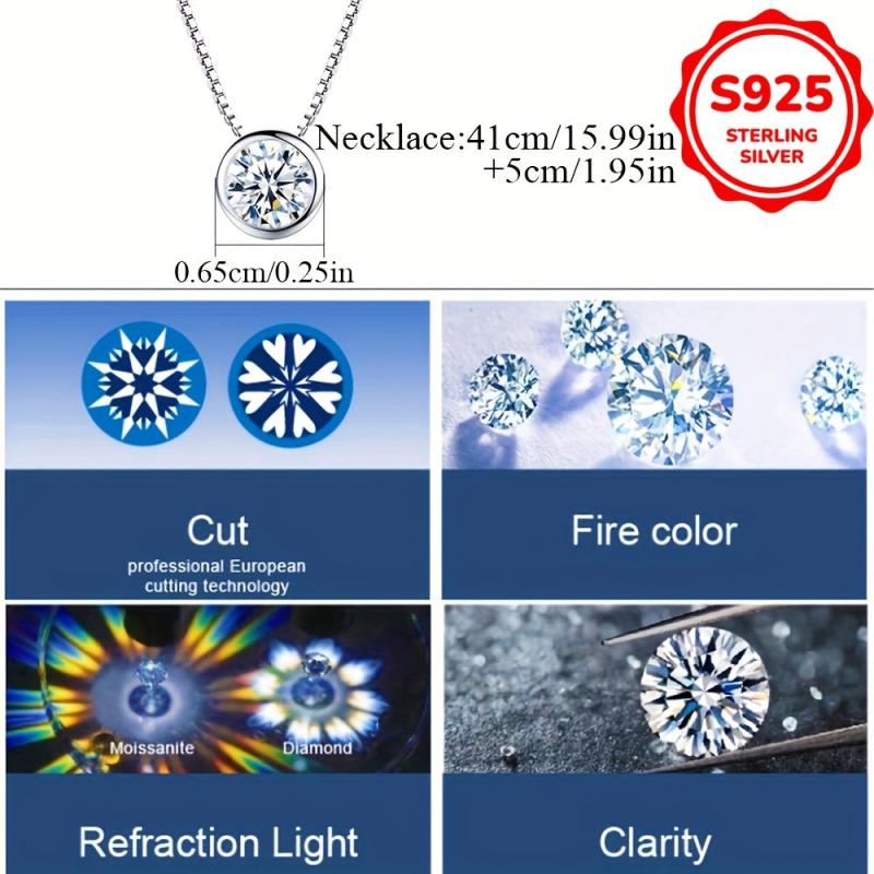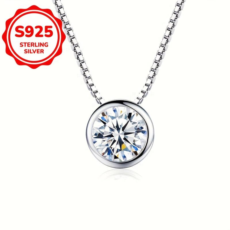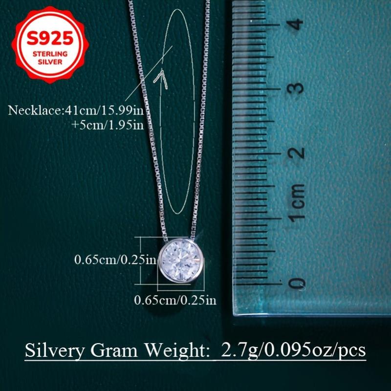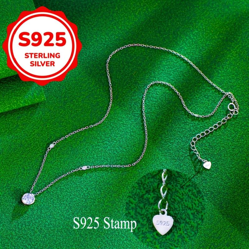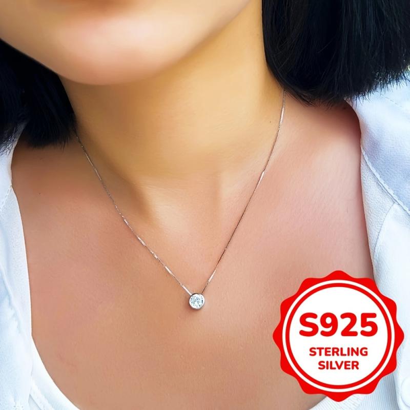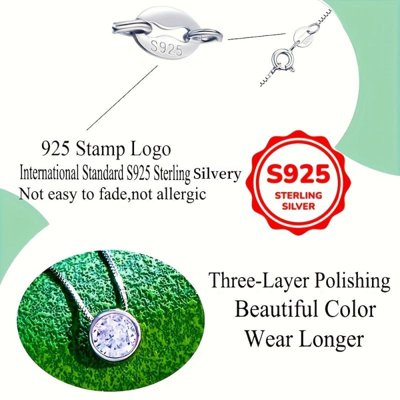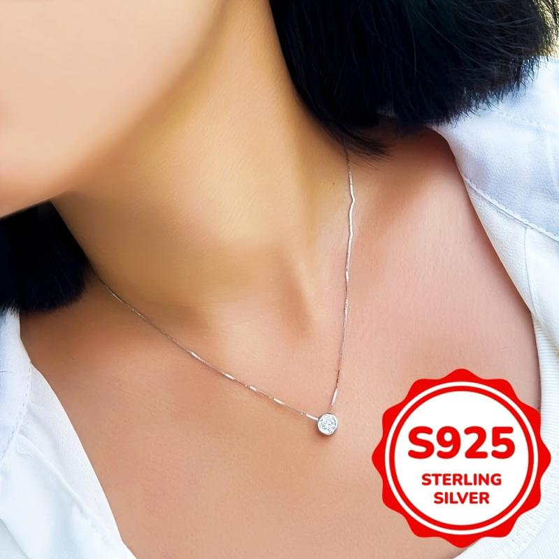 This elegant necklace features a round cut cubic zirconia inlay and an adjustable clavicle chain. Made of 925 pure silver, it is suitable for women with low allergy sensitivity.