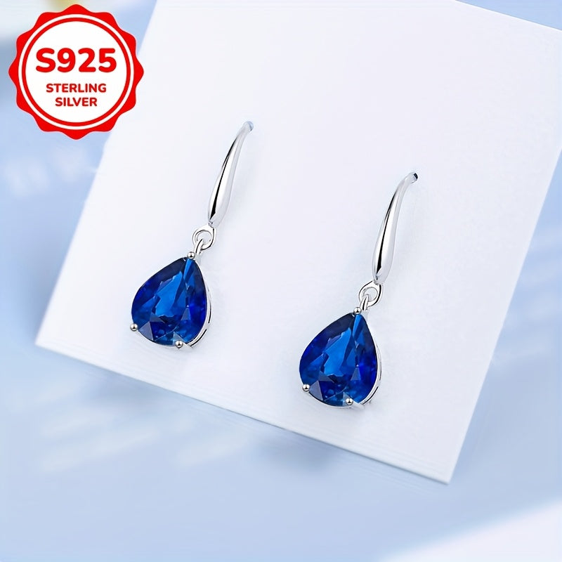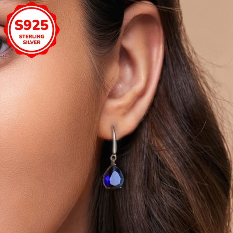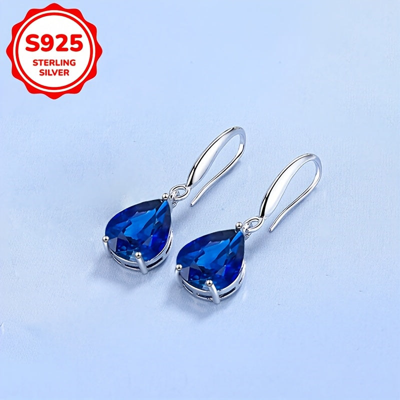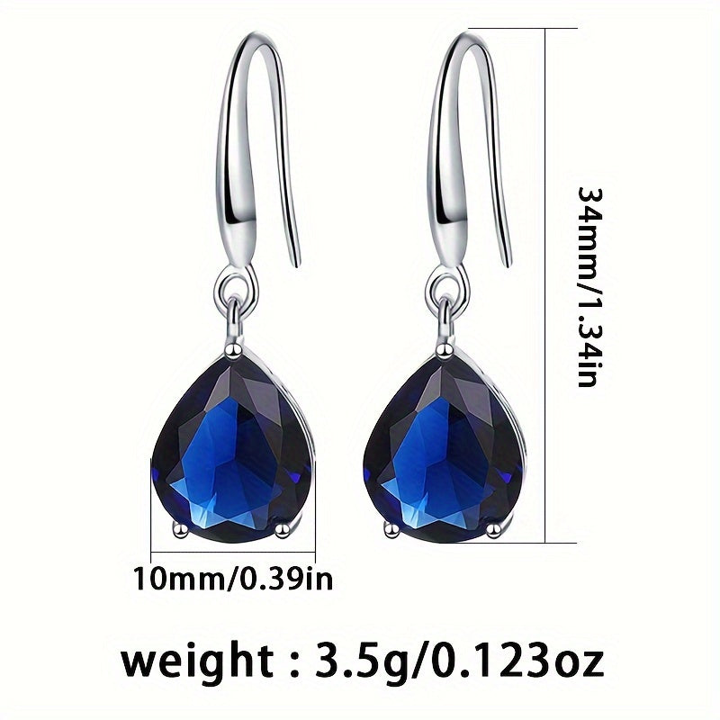 Stunning silver earrings featuring synthetic zirconia in water drop design. Lightweight at 3.5g, perfect for gifting or vacation accessorizing.