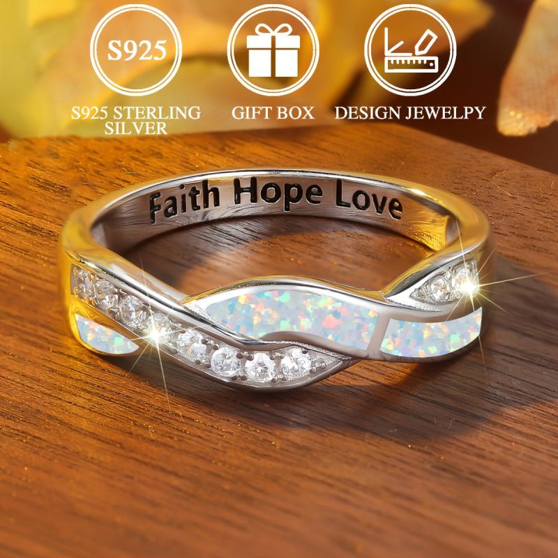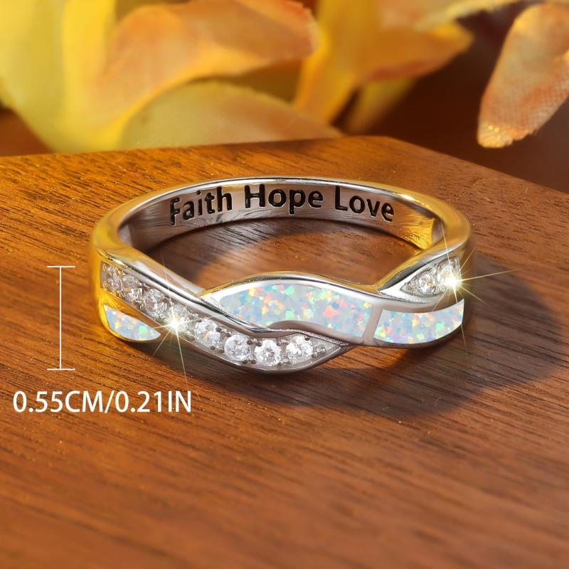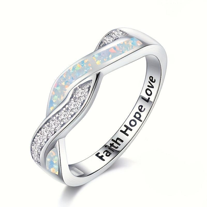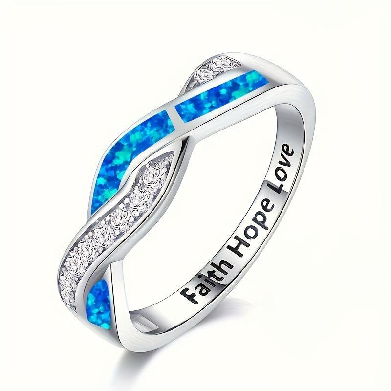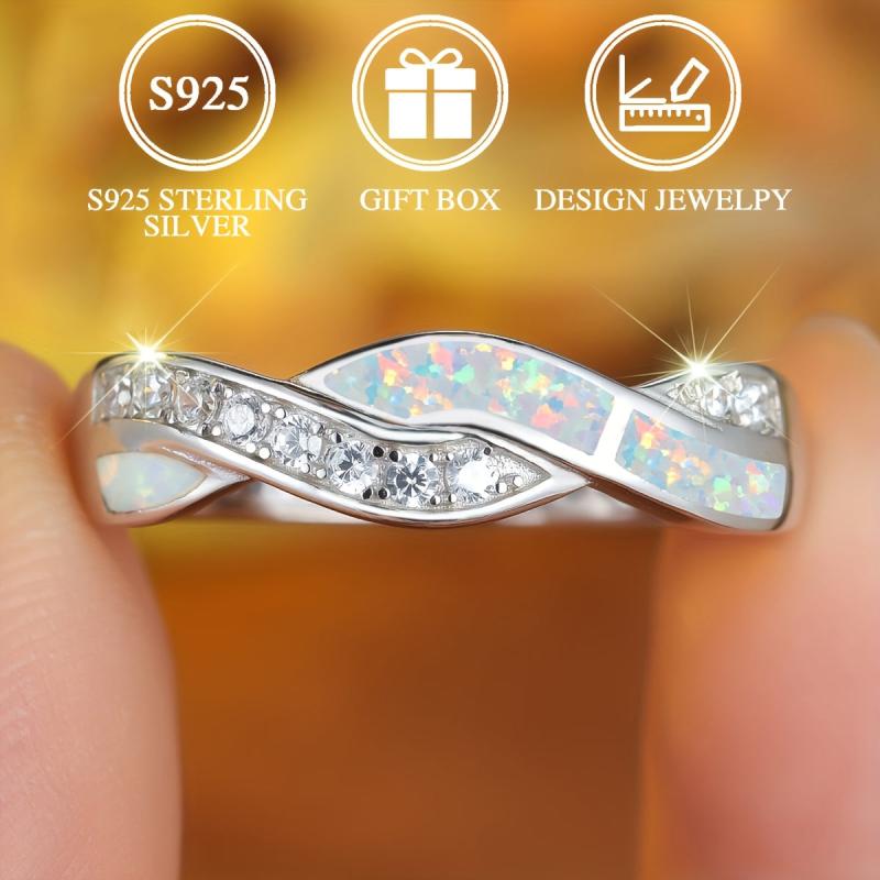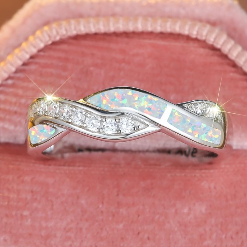 This beautiful ring features a Bohemian style design with synthetic opal and zirconia accents. It is perfect for weddings, engagements, or promises.