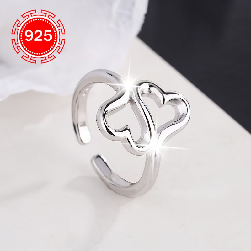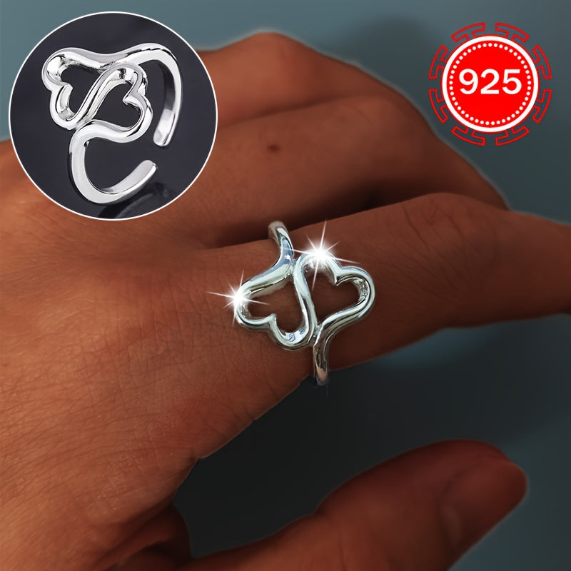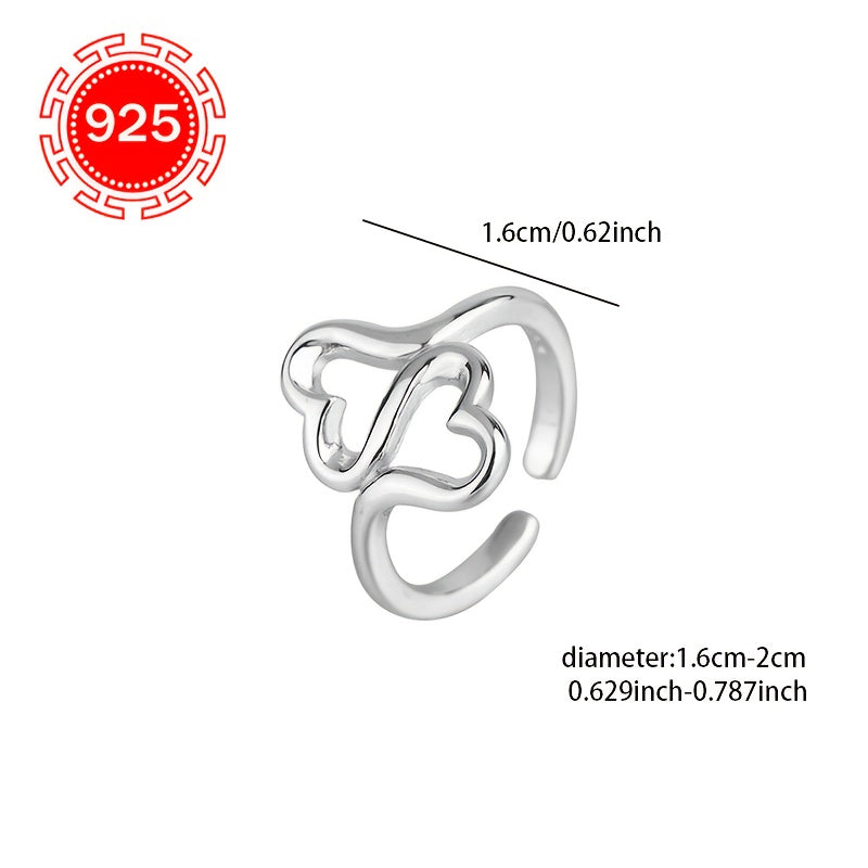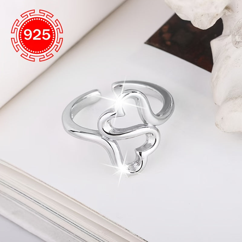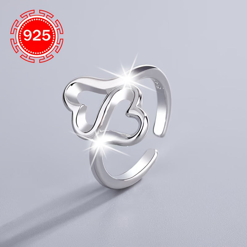 This 925 silver ring is designed for women with low allergy levels. Its sweet double-layer heart shape adds a touch of elegance to your outfit.