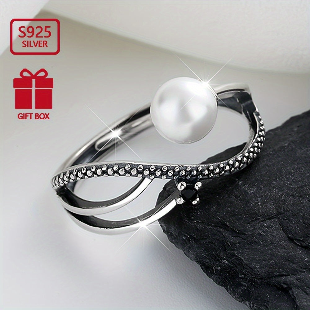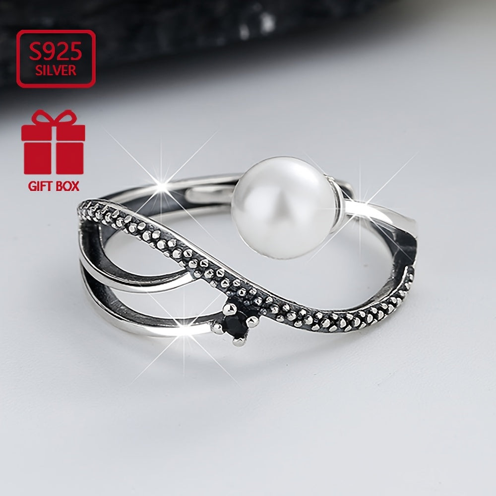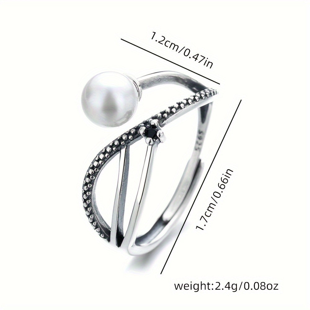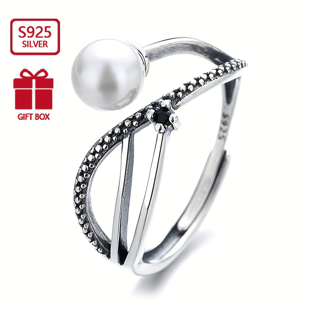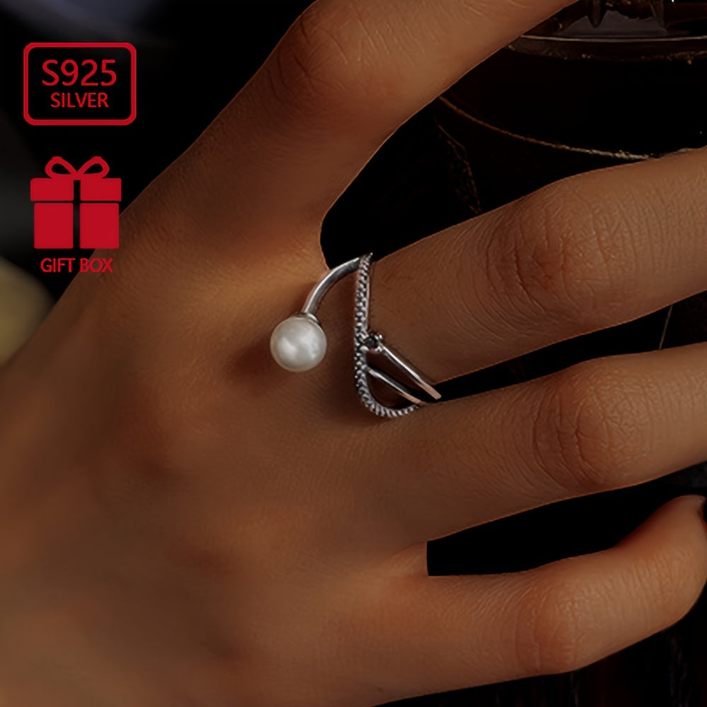 Elegant and versatile ring made of 925 sterling silver featuring a creative geometric design and a lustrous pearl. Perfect for adding a touch of sophistication to your party or banquet attire.
