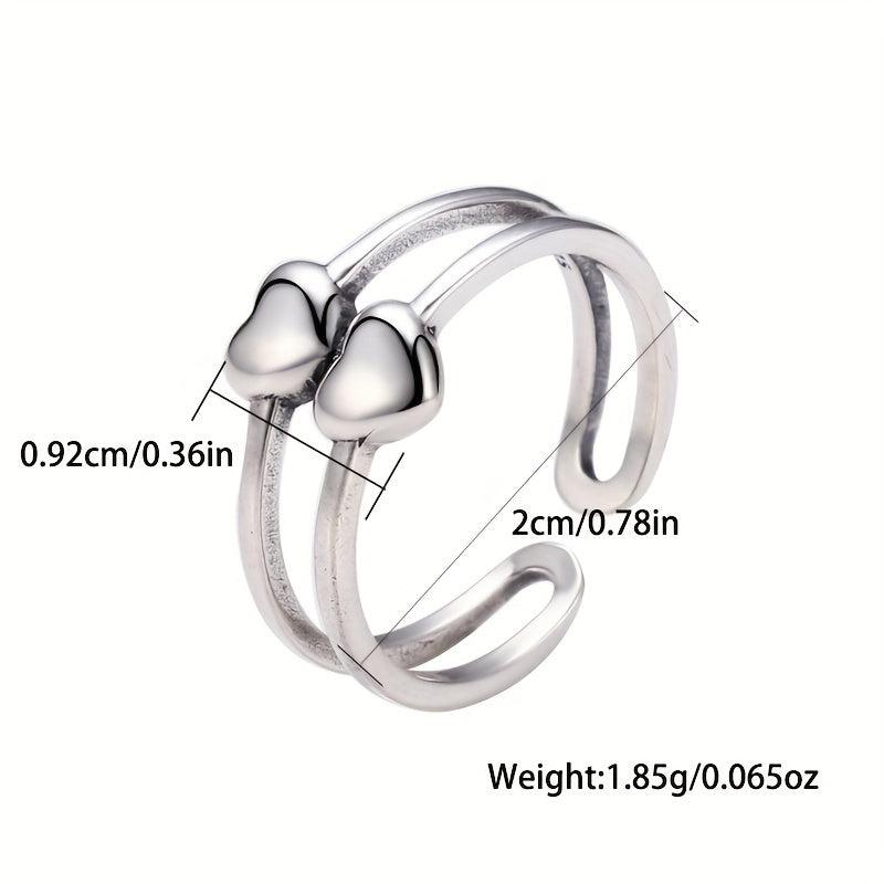 This vintage-inspired 925 silver double layer ring featuring a heart design is the perfect gift for Valentine's Year.