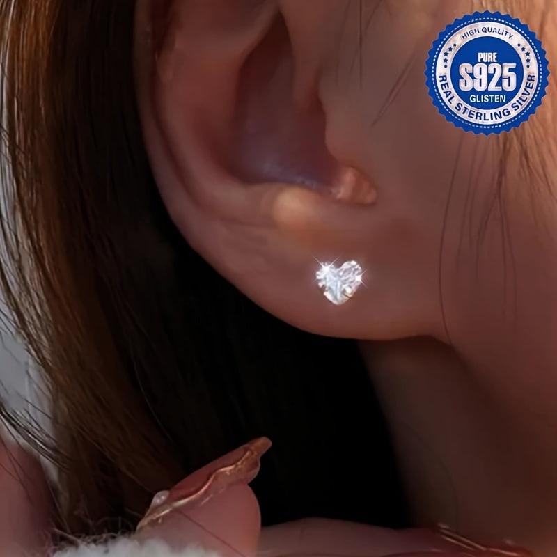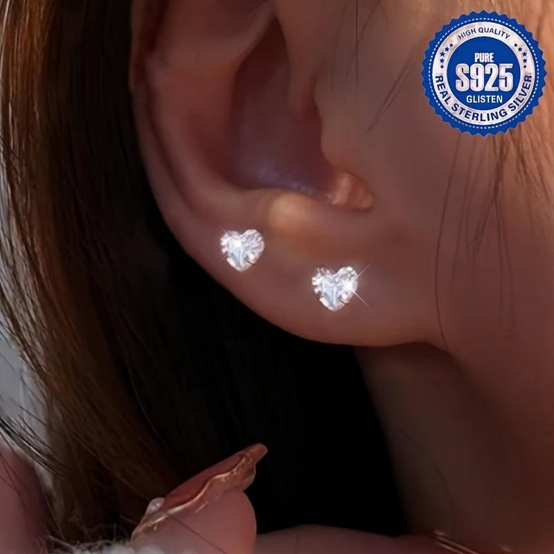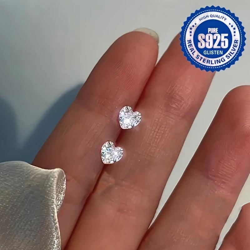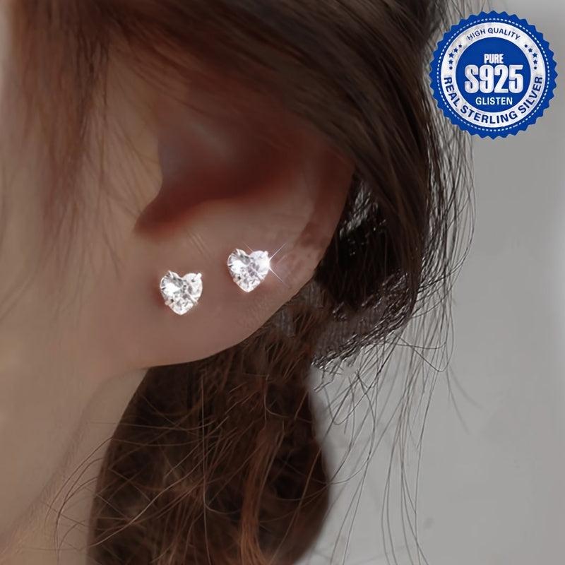 Elegant and dainty heart earrings with synthetic zirconia inlay, perfect for daily wear or special occasions. Made from 925 silver for a lasting shine.
