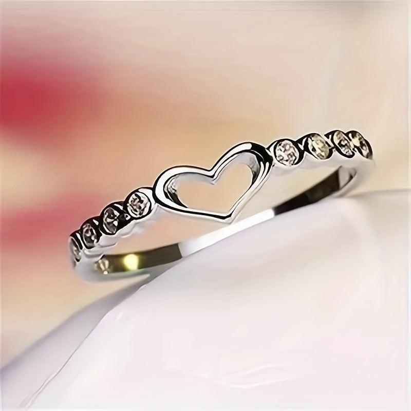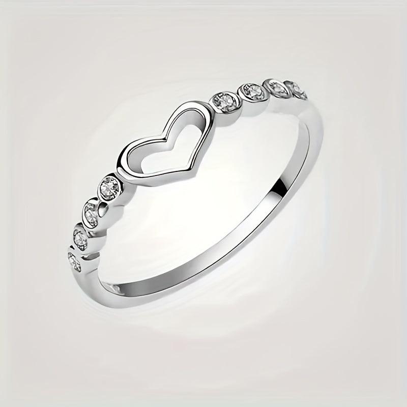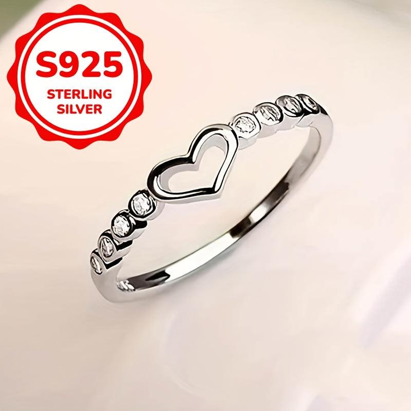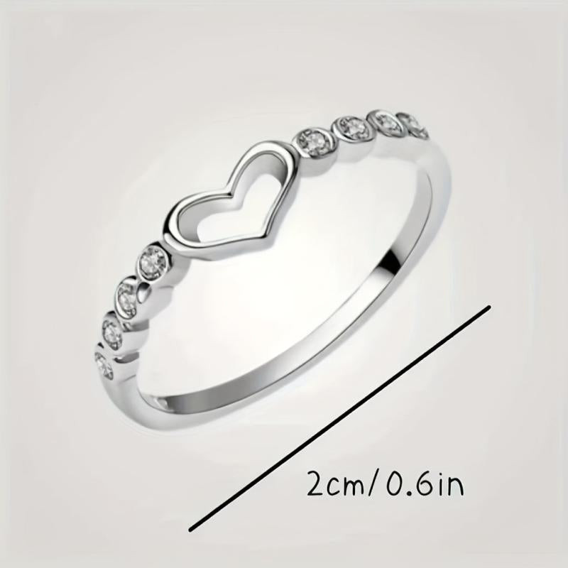 This 925 sterling silver ring features a heart design with micro zirconia stones on a narrow band. It adds a touch of shimmer to your daily outfits and makes a sweet gift for yourself or a loved one.
