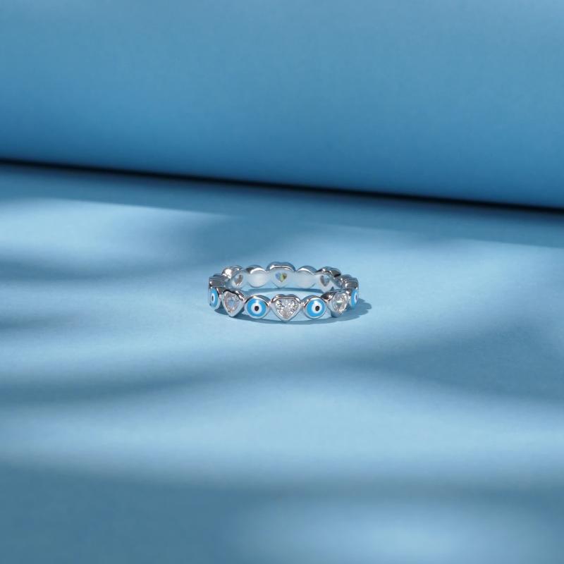 Add a touch of charm to your look with this heart-shaped ring featuring enamel and sparkling clear CZ stackable eyes. Made of high-quality 925 sterling silver, this fine jewelry piece is a perfect addition to your collection.
