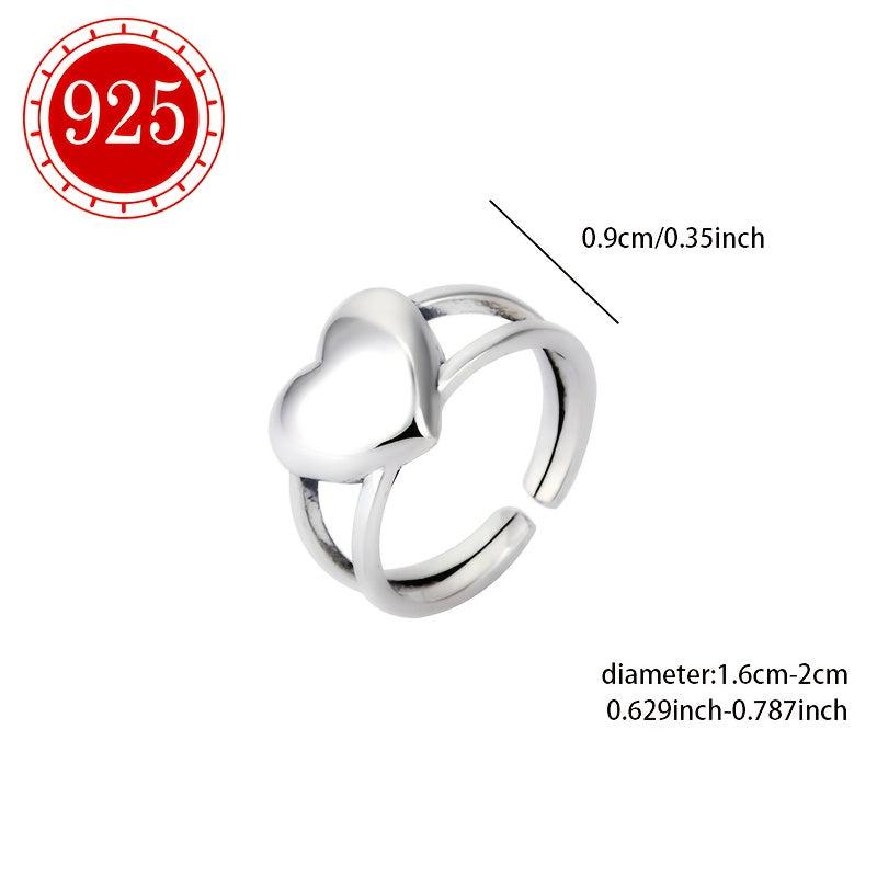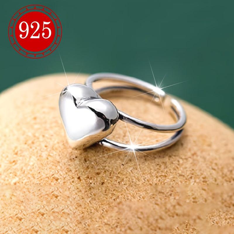 This 925 silver ring features a heart-shaped layer design with a convex surface, perfect for a high-end feeling. It is hypoallergenic and suitable for the index finger or as a tail ring.